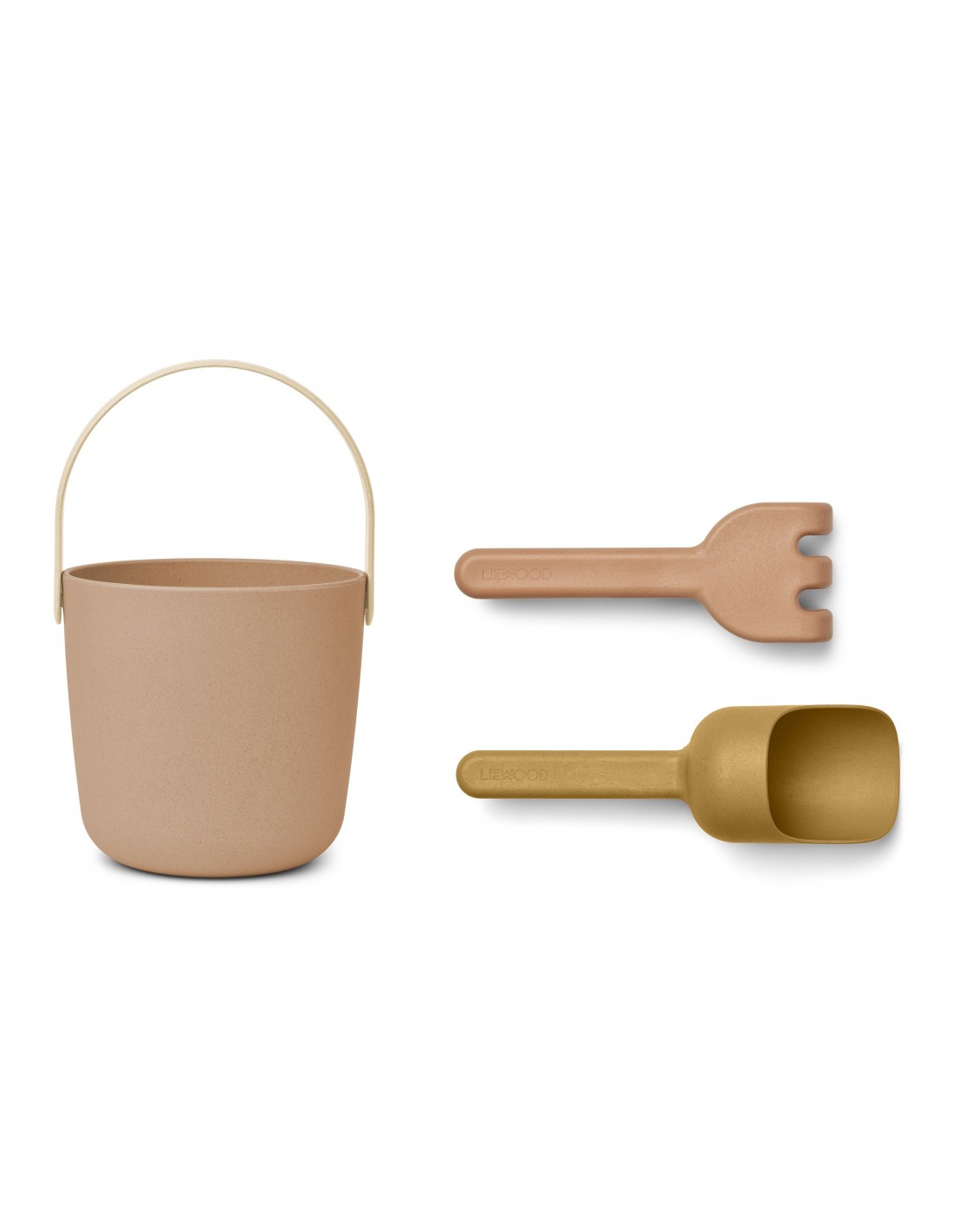 Este set garantiza horas de diversión en la playa o la piscina. Incluye un cubo con asa, una pala y un rastrillo. Es duradero, resistente y fácil de limpiar.