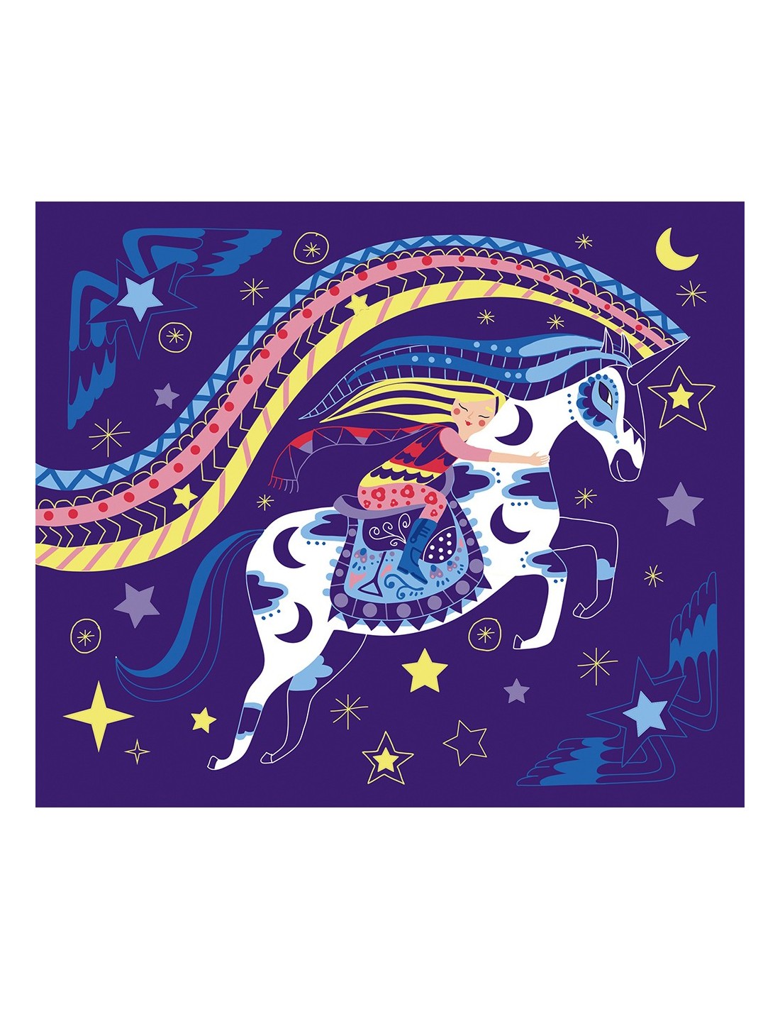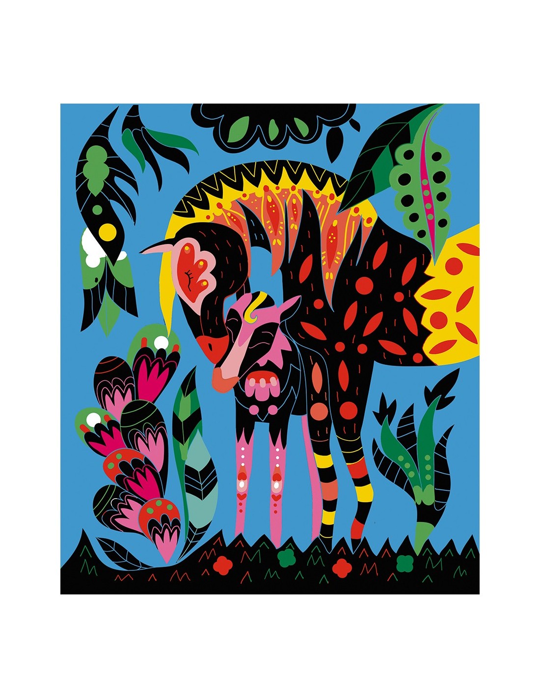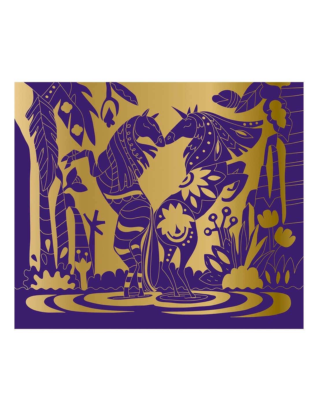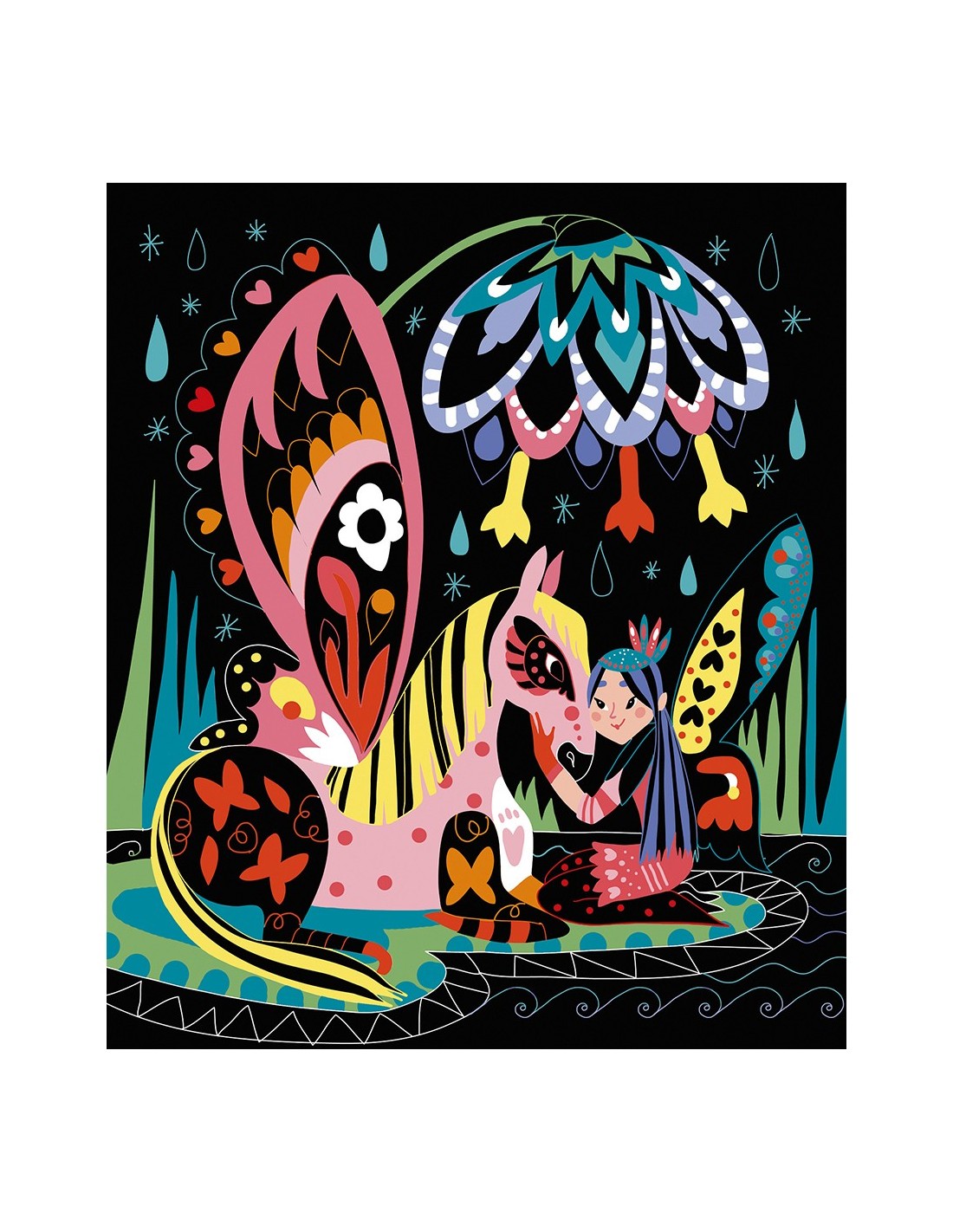Esta caja contiene ocho tarjetas para rascar, una herramienta de madera y un manual con modelos e instrucciones.