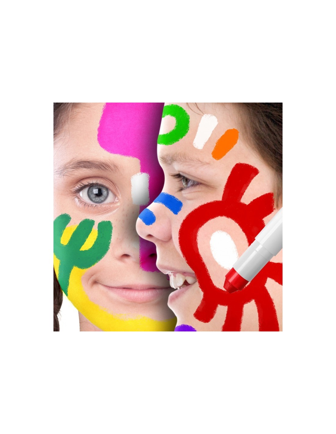 Barra de maquillaje de uso fácil y seguro. Colores cubrientes, secado rápido, y fácil y suave aplicación. Calidad cosmética. No graso, no requiere desmaquillador para limpiar. Fácilmente lavable de la piel con agua y jabón.
