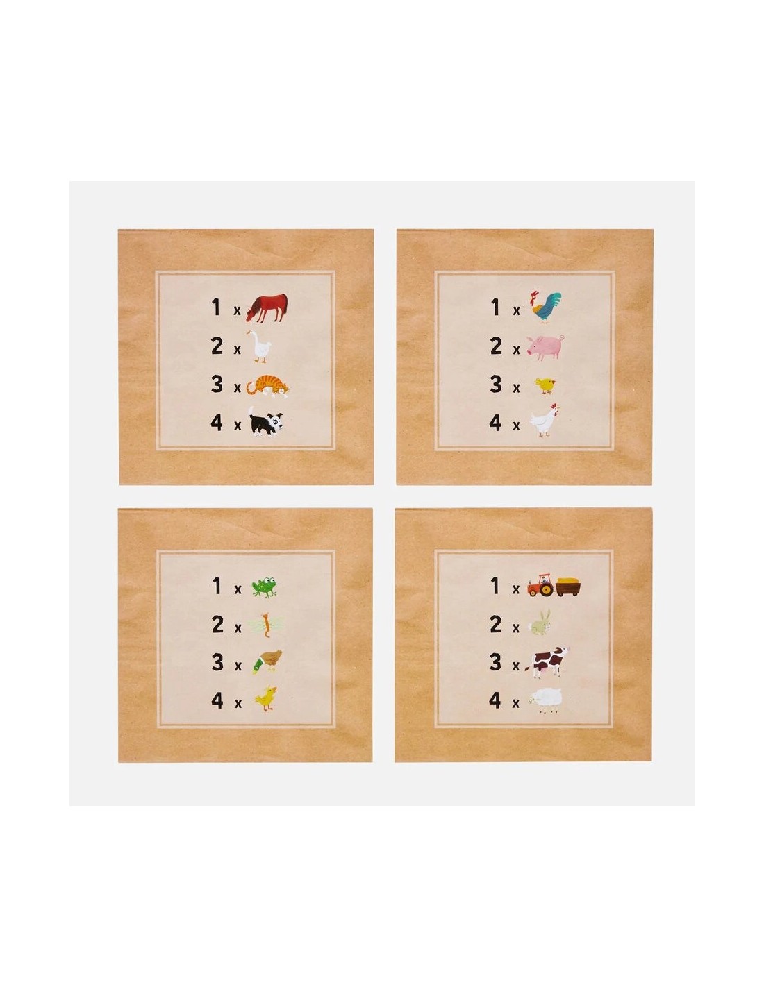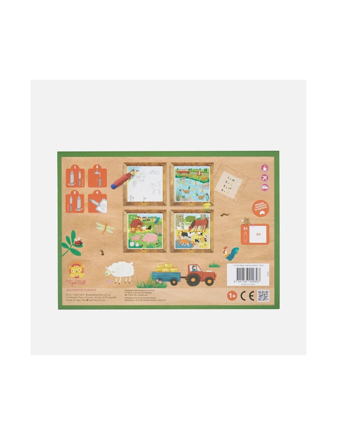 Incluye: 4 tableros de ilustraciones/actividades (con actividades de conteo en la parte posterior) y un pincel rellenable con agua.
