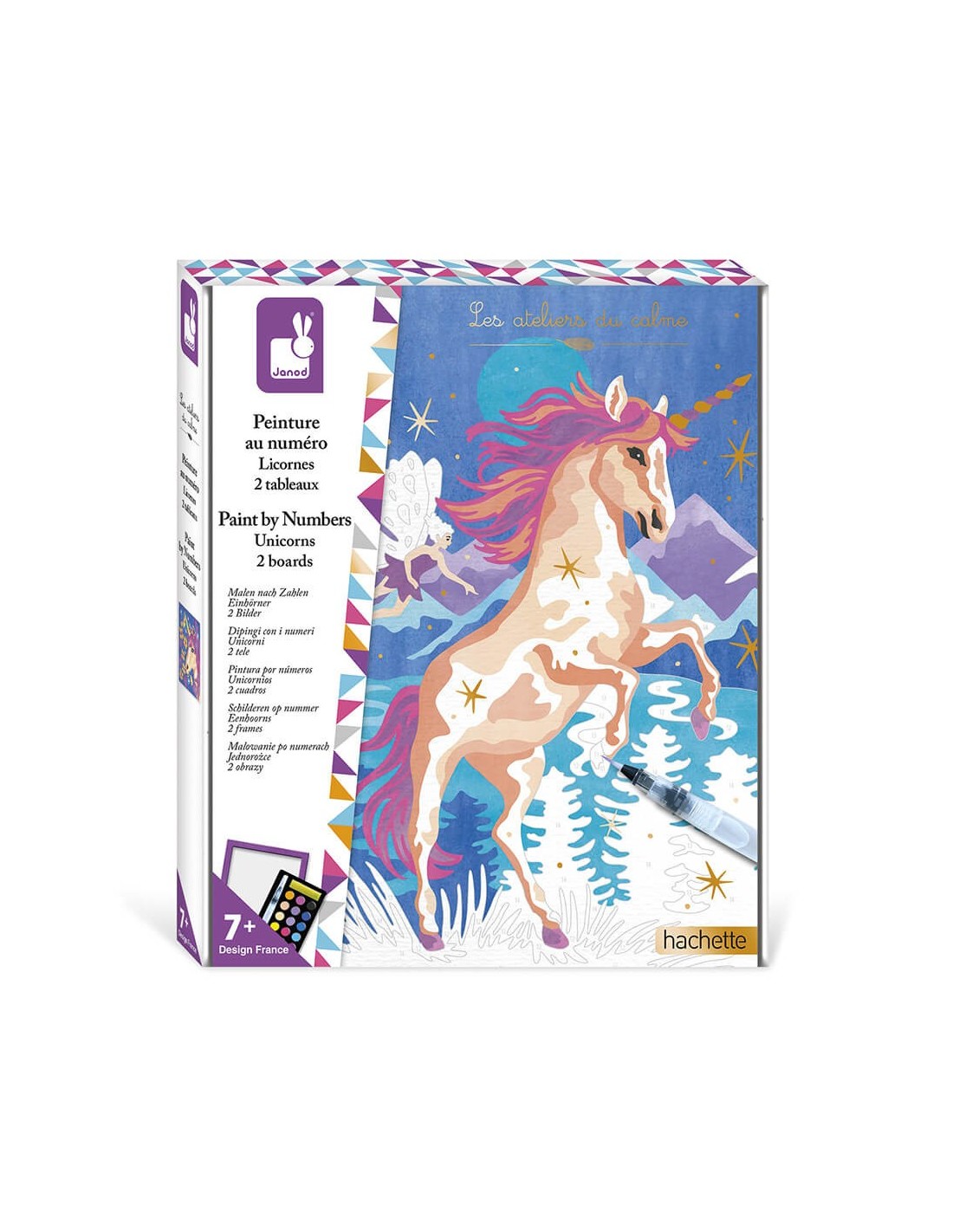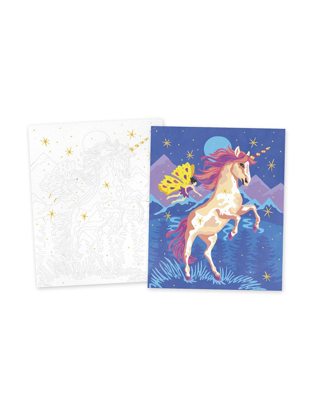 ¡Todos pueden pintar con la pintura por números! Dirígete a la tierra encantada de los unicornios con esta caja, que contiene todo lo necesario para pintar 2 cuadros, pero ¡sin salirte de la raya! Los niños y niñas desarrollarán sus talentos como artistas y su destreza, y realizarán hermosas pinturas de las que estarán orgullosos. Uno de los cuadros incluso tiene detalles dorados, para lograr un resultado realmente satisfactorio. ¡También hay un marco para pintar en el que el niño o la niña podrá exponer sus creaciones en la pared para decorar su habitación!