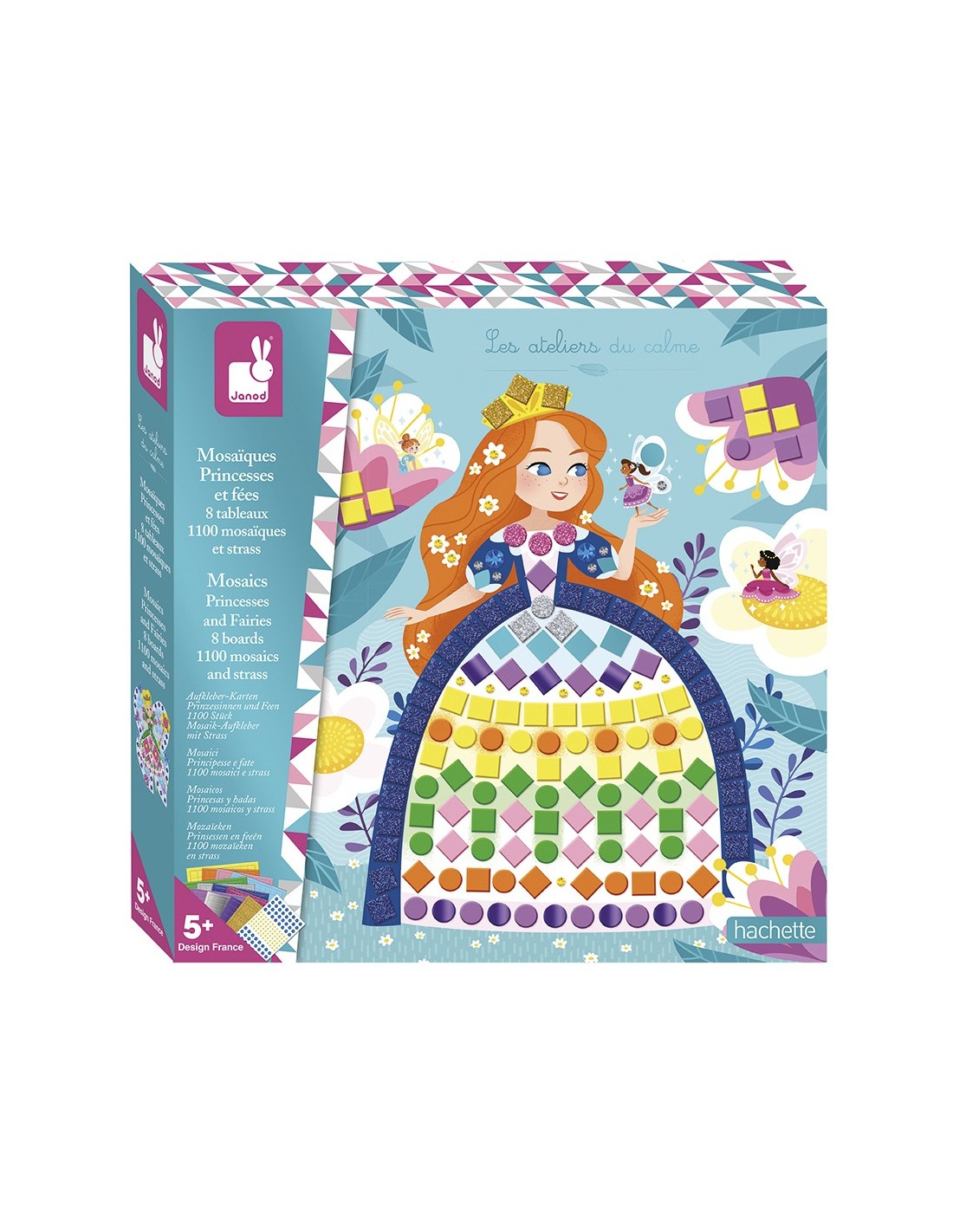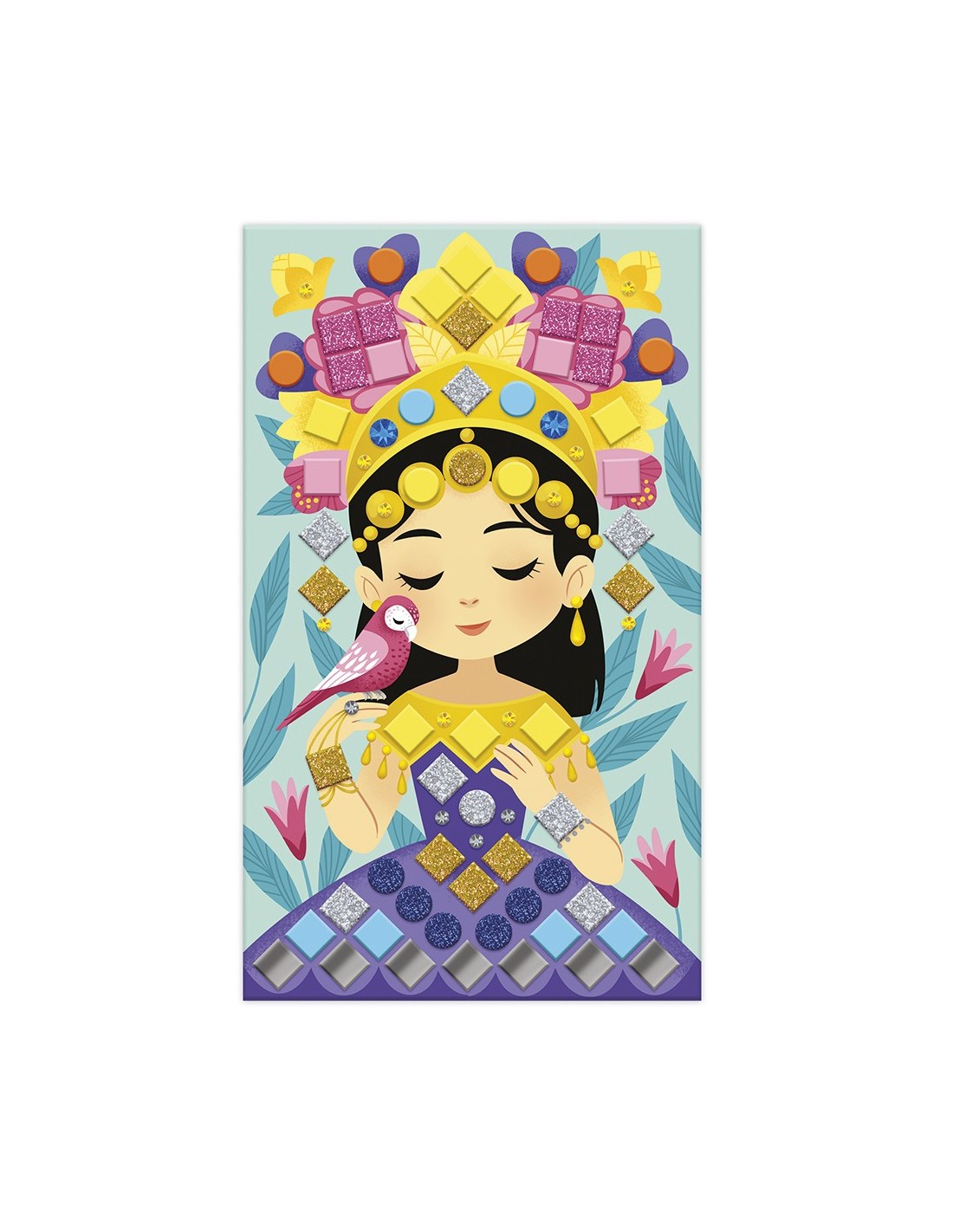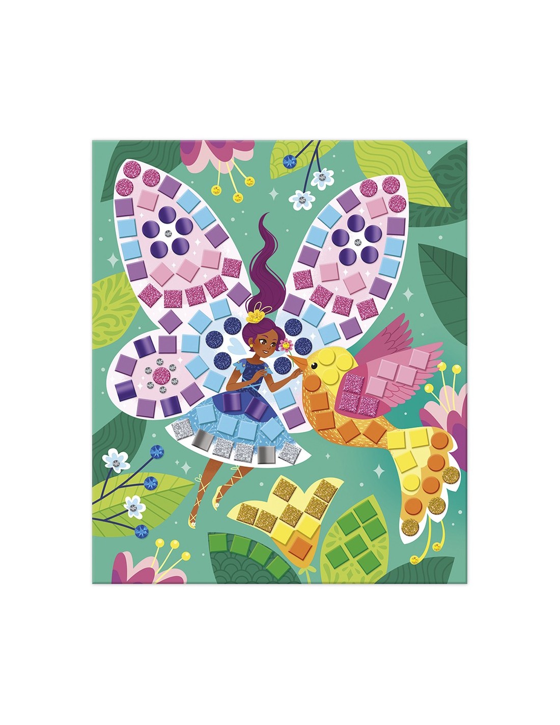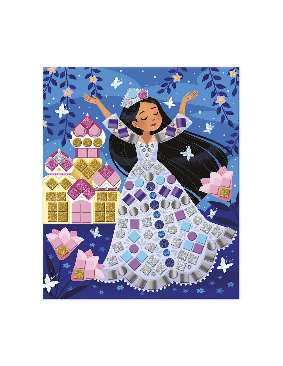 Este estuche creativo consta de 8 cuadros sobre el tema de las princesas y las hadas para decorarlos con mosaicos de espuma mate y con purpurina. El tamaño de los mosaicos está pensado para trabajar de forma minuciosa. ¡Una vez terminados los cuadros, se pueden colgar con los ganchos adhesivos para decorar habitaciones!