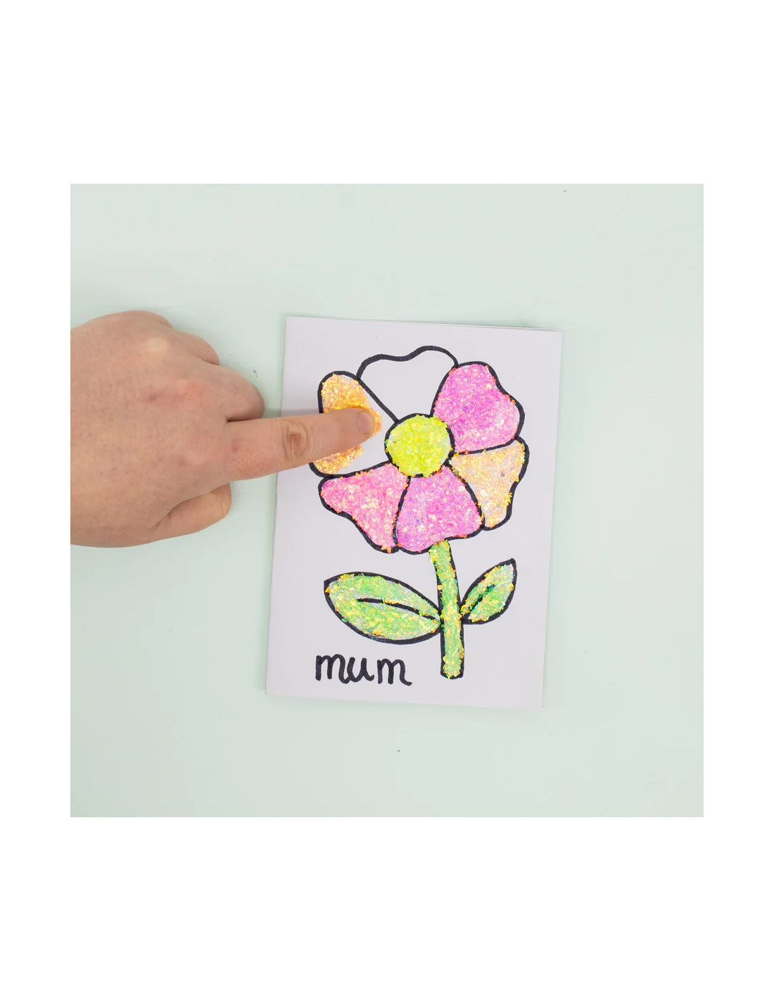 Este adhesivo con purpurina se puede utilizar de muchas maneras: embelleciendo obras de arte en papel, decorando superficies duras o dando a las tarjetas de felicitación un brillo reluciente. Es un artículo de papelería divertido y versátil que brilla y se pega, sin ensuciar ni dejar residuos pegajosos. Los colores, suaves y de fantasía, están cargados de gruesa purpurina irregular y holográfica para obtener resultados más iridiscentes.