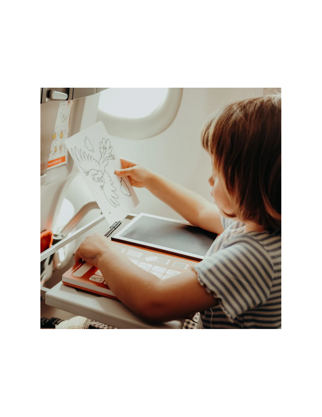 Pizarra portátil Kidydraw-Mini con pantalla LCD de 8,5" para escribir y dibujar. Incluye 15 fichas con dibujos por ambas caras para introducir en la parte trasera de la pantalla y calcar los dibujos ¡Simplemente presionando un botón se borra y podemos volver a empezar! Incluye un botón de bloqueo. Muy ligera, perfecta para llevar de paseo o de viaje.