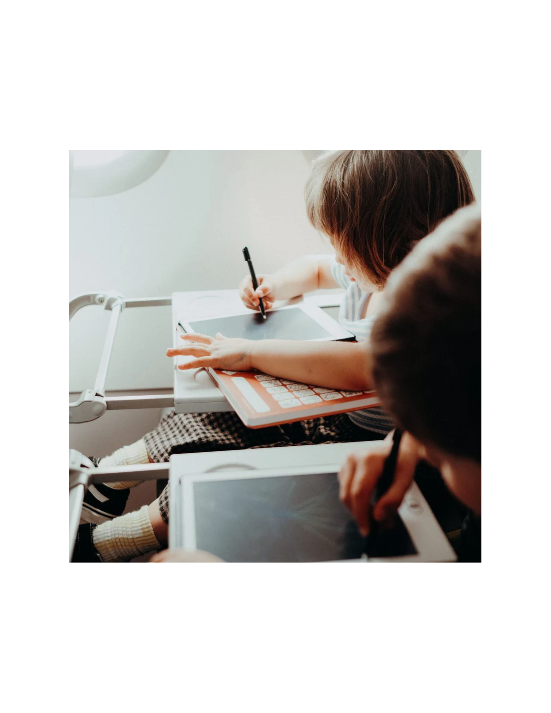 Pizarra portátil Kidydraw-Mini con pantalla LCD de 8,5" para escribir y dibujar. Incluye 15 fichas con dibujos por ambas caras para introducir en la parte trasera de la pantalla y calcar los dibujos ¡Simplemente presionando un botón se borra y podemos volver a empezar! Incluye un botón de bloqueo. Muy ligera, perfecta para llevar de paseo o de viaje.