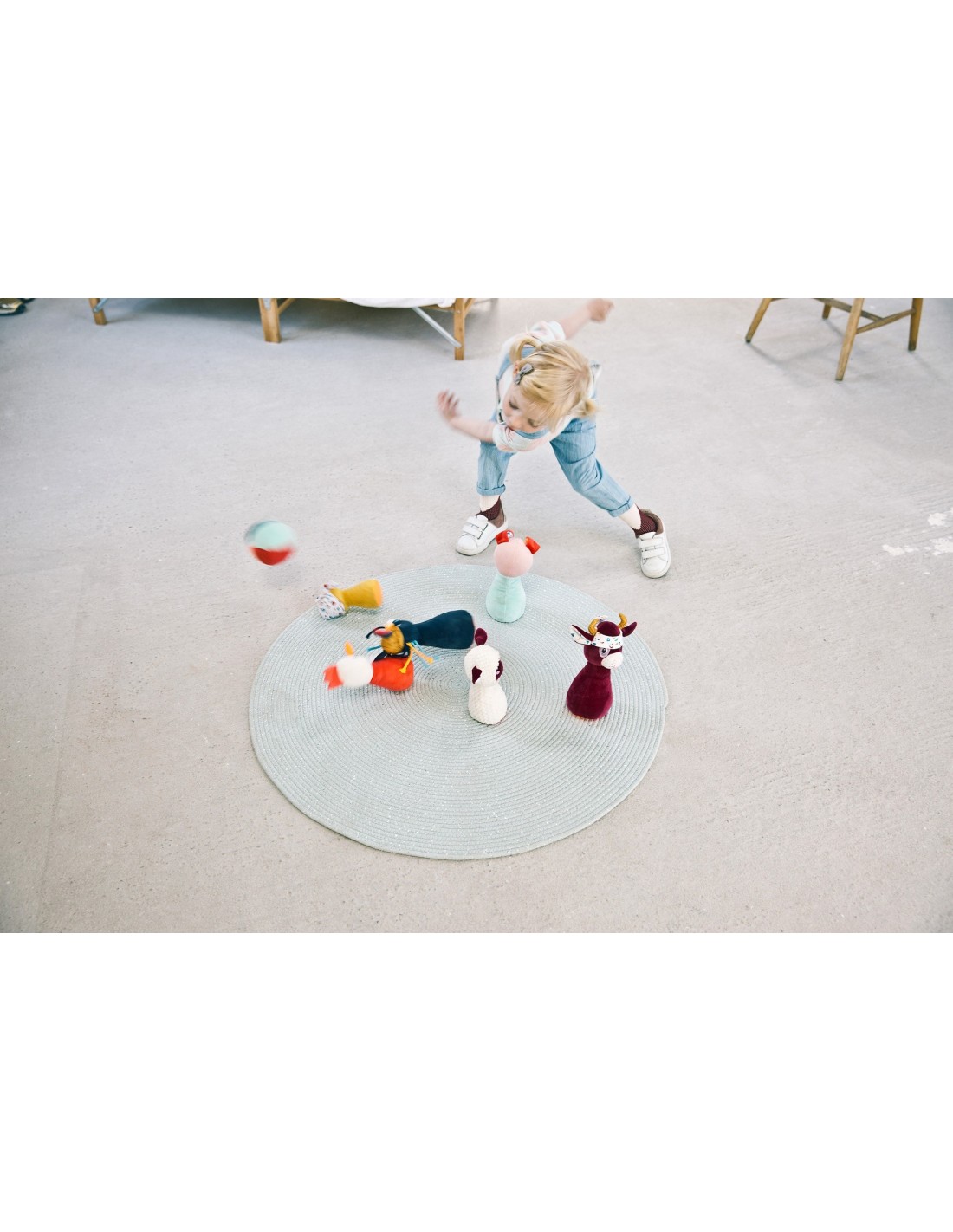 ¿Qué tal si hacemos una escapada a la granja? Con Ignace, Rosalie, Paulette, Yvon, Gaspard y el cerdito, es como estar allí. ¡Solo falta el peque para divertirse y jugar una partida de bolos supergraciosa todos juntos! Este juego de bolos de peluche con las formas de sus personajes favoritos le encantará al niño. Viene con una pelota sonajero que estimula los sentidos del bebé. Disfrutará derribando estos bolos suaves y coloridos durante unas partidas endiabladas. Los bolos están hechos de punto y poliéster.