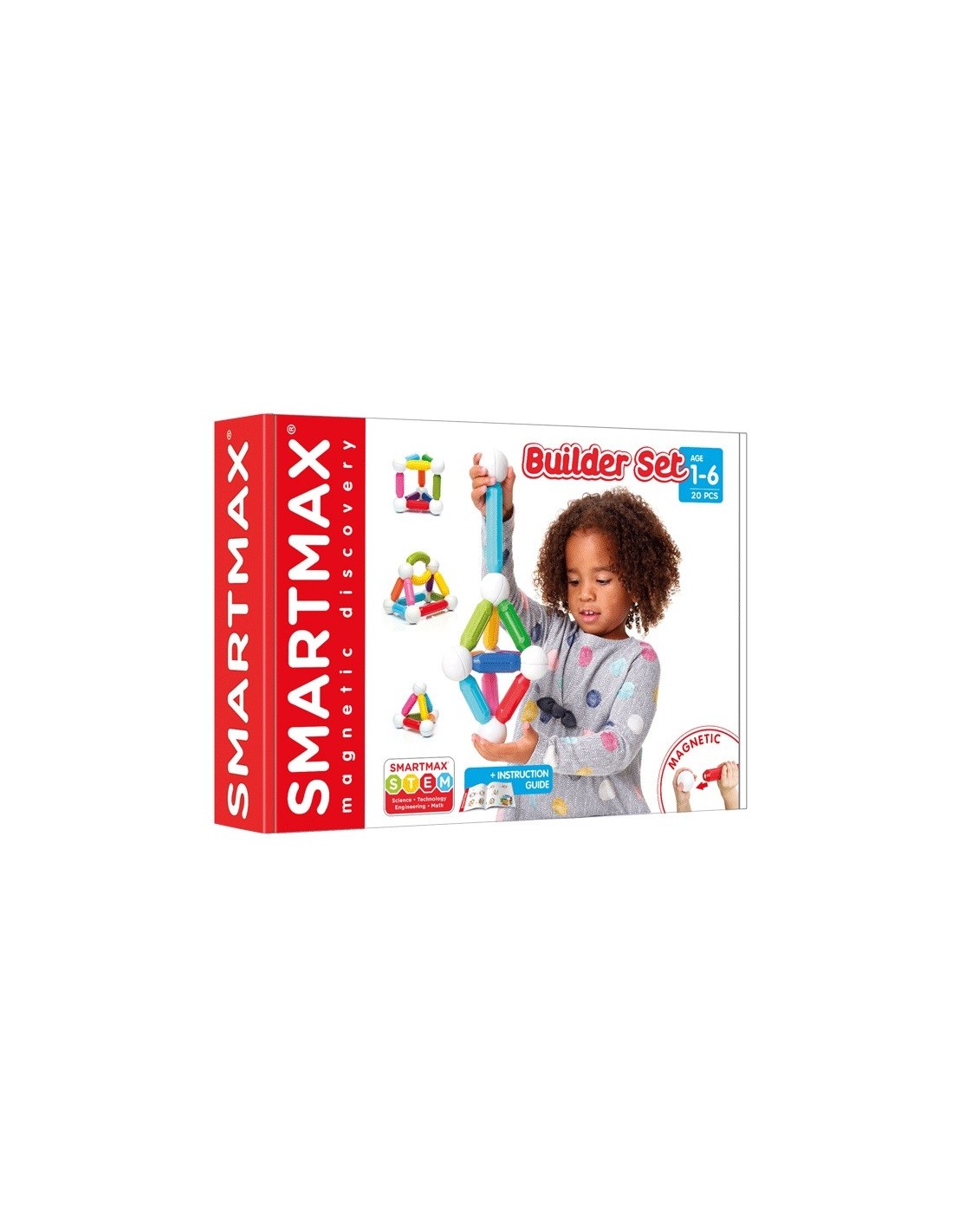 Este set está formado por 20 coloridas piezas magnéticas con las que podrán realizar multitud de divertidas construcciones. Todas las piezas son 100% compatibles con otros productos SmartMax®.