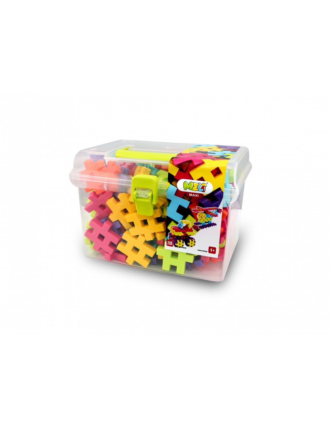Esta caja contiene 100 bloques Meli Maxi (4,2 cm x 4,2 cm) y está pensada para las manos más pequeñitas. Además, viene presentado en una caja plástica con asa lo que la hace perfecta para transportar y llevar a cualquier lugar.