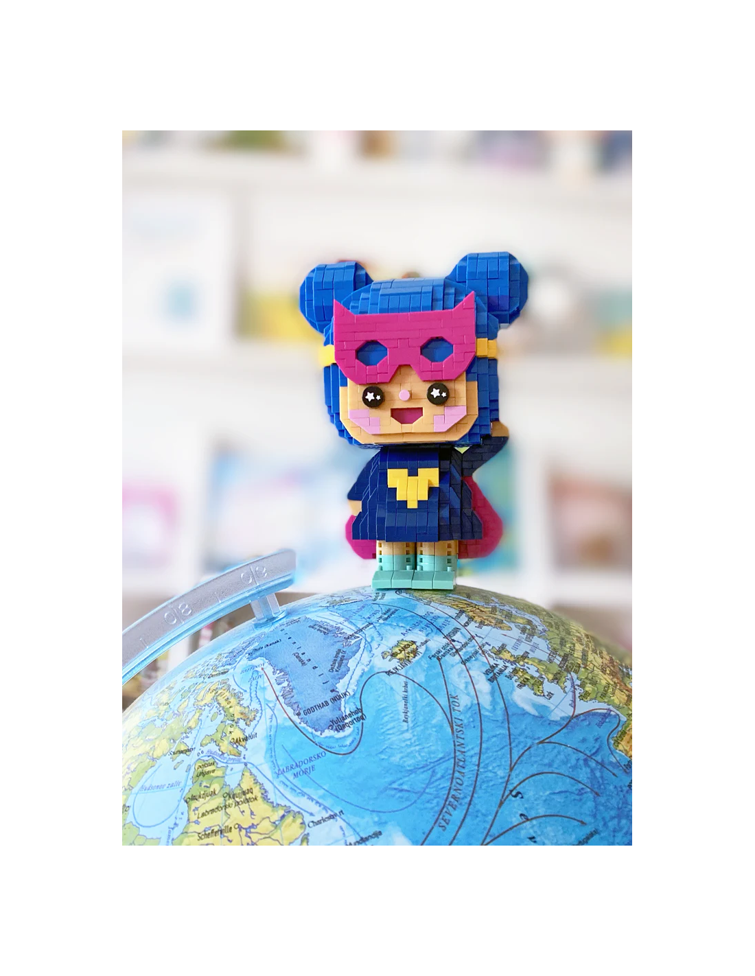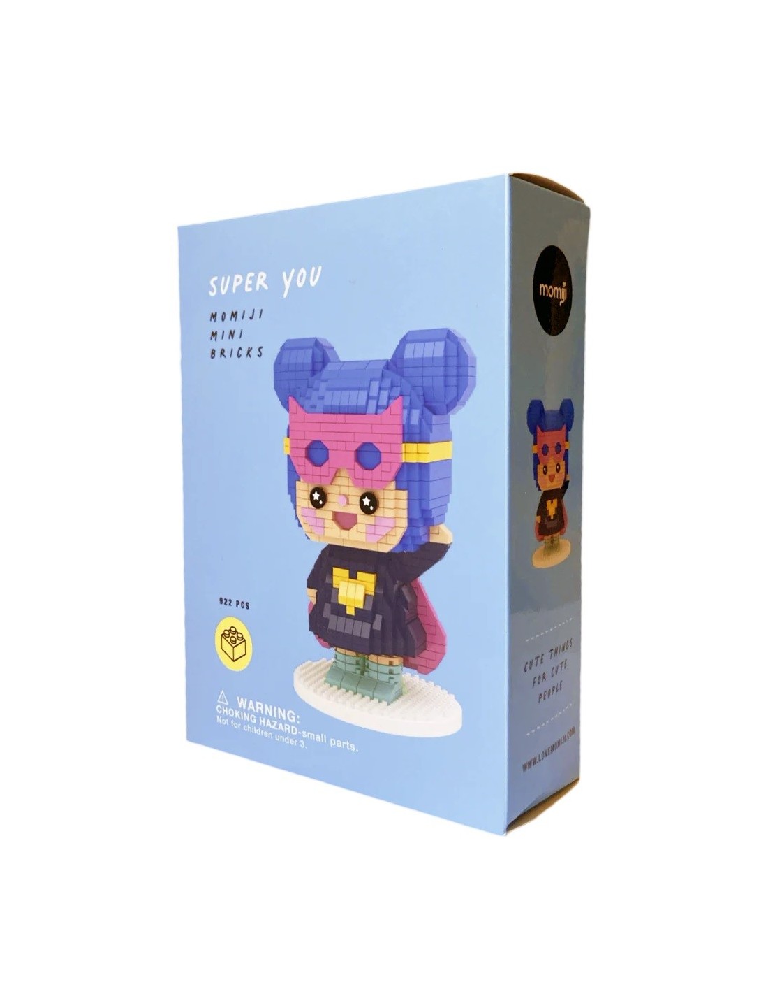 Eres una superheroína. ¡Tienes el poder! ¡Crea una muñeca Momiji con cientos de diminutos minibloques! Sumérgete en este adorable desafío. El set incluye 922 piezas para montar a tu superheroína, y una hoja de instrucciones para que aprendas a construir tu Momiji.