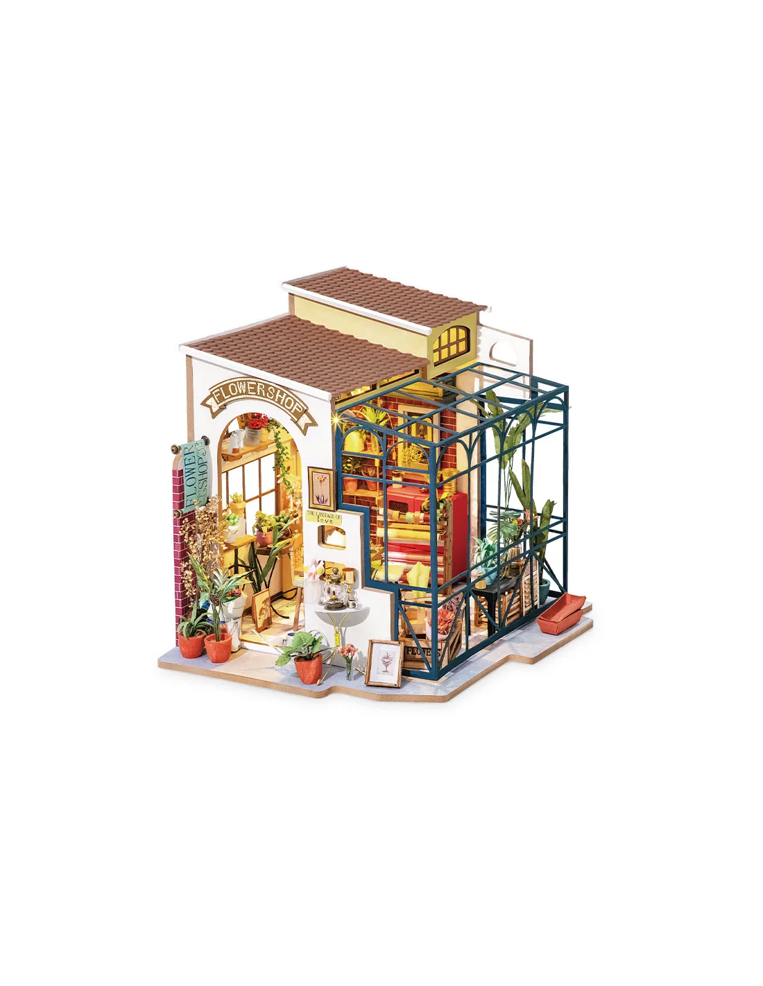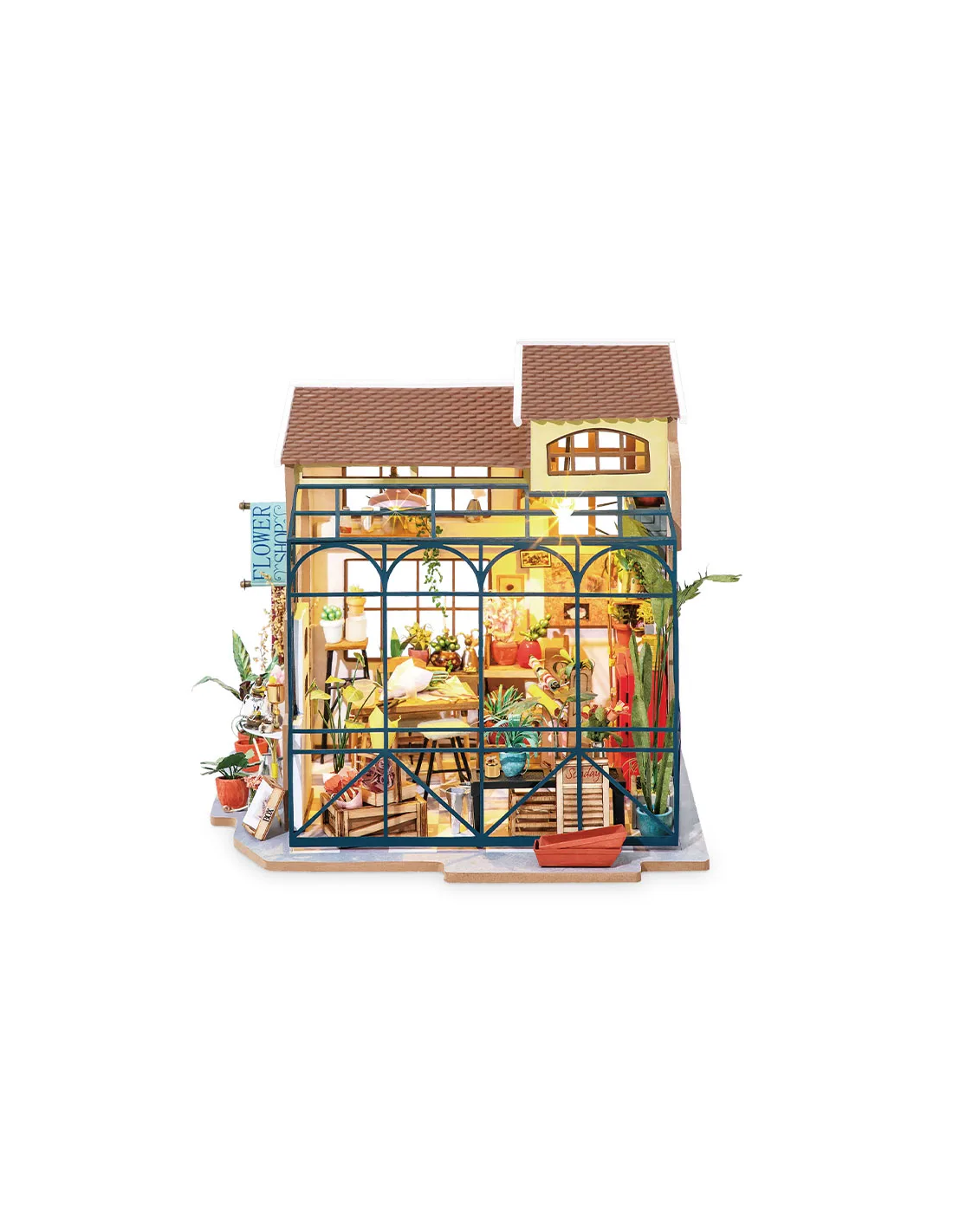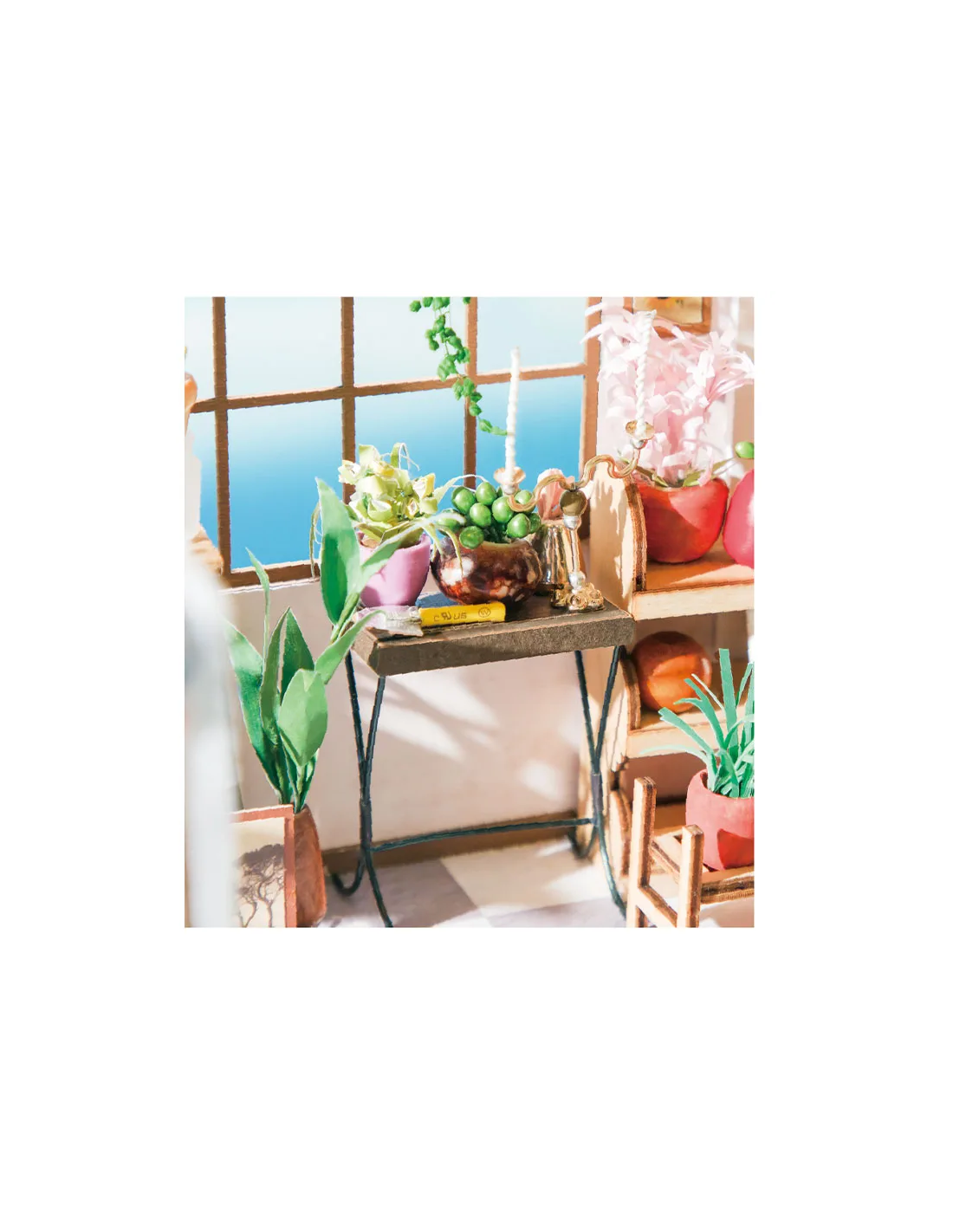 Esta casa en miniatura DIY está basada en una preciosa floristería. Todas las piezas están en bolsas separadas y un colorido libro de instrucciones guiará paso a paso para terminar la casita incluso por los más principiantes. El material de todo el kit es respetuoso con el medio ambiente y no tiene rebabas, la pintura no tiene olor y también se puede lavar fácilmente con agua. La paciencia es la clave fundamental para hacer un buen trabajo. Puedes reunirte con familiares y amigos para experimentar el placer de crear algo así con tus propias manos. Finalmente podrás disfrutar de tu logro con un elemento decorativo único y especial.