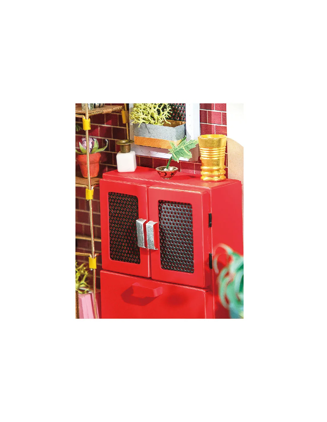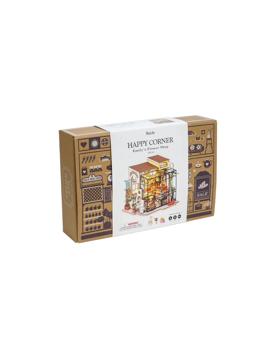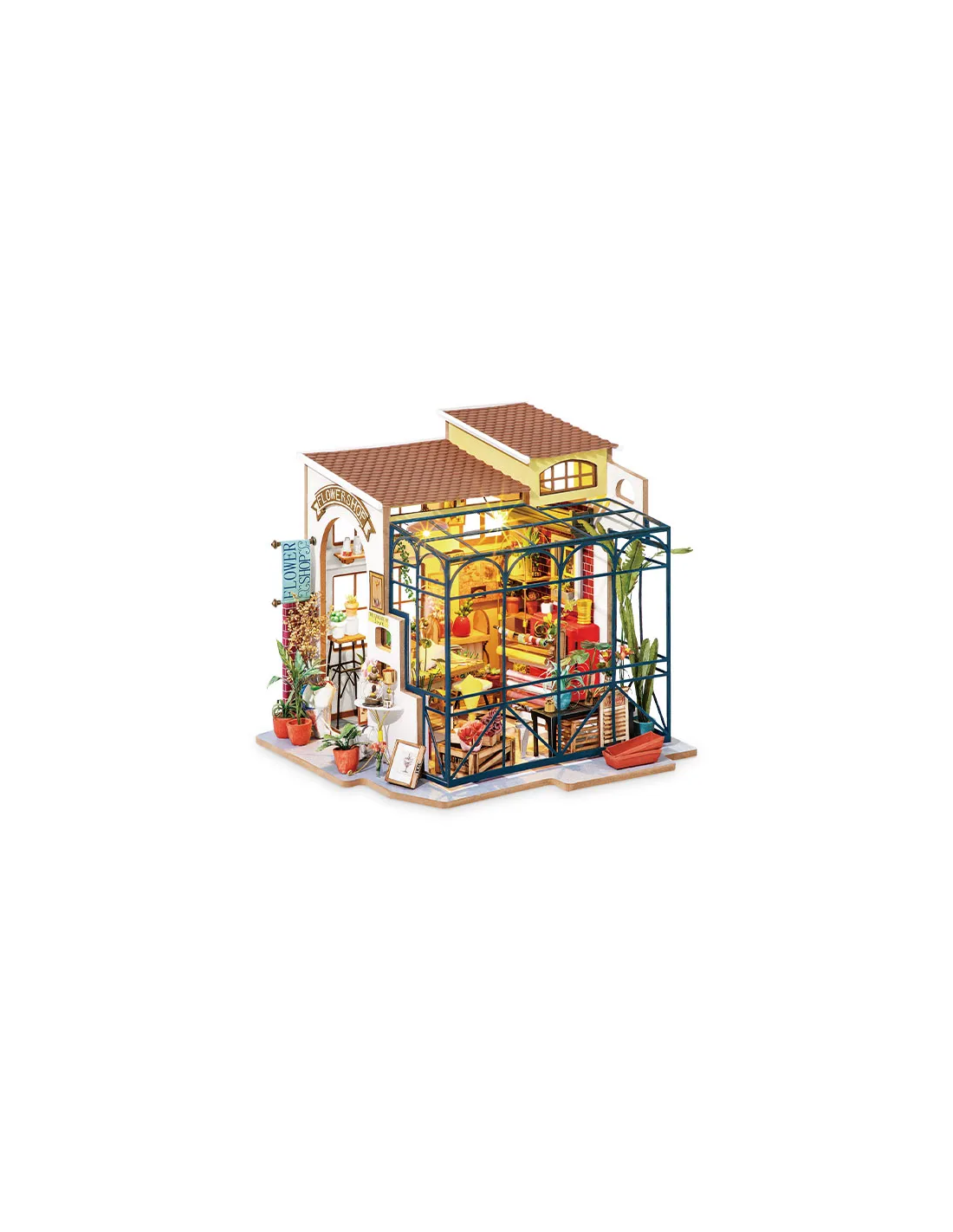 Esta casa en miniatura DIY está basada en una preciosa floristería. Todas las piezas están en bolsas separadas y un colorido libro de instrucciones guiará paso a paso para terminar la casita incluso por los más principiantes. El material de todo el kit es respetuoso con el medio ambiente y no tiene rebabas, la pintura no tiene olor y también se puede lavar fácilmente con agua. La paciencia es la clave fundamental para hacer un buen trabajo. Puedes reunirte con familiares y amigos para experimentar el placer de crear algo así con tus propias manos. Finalmente podrás disfrutar de tu logro con un elemento decorativo único y especial.