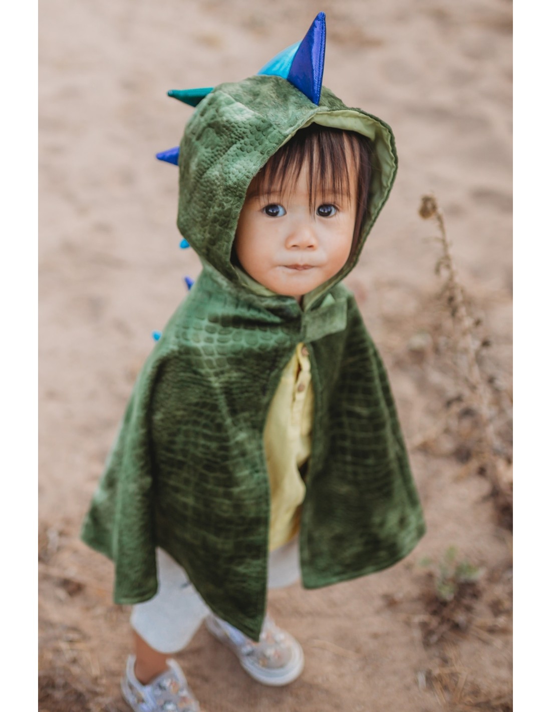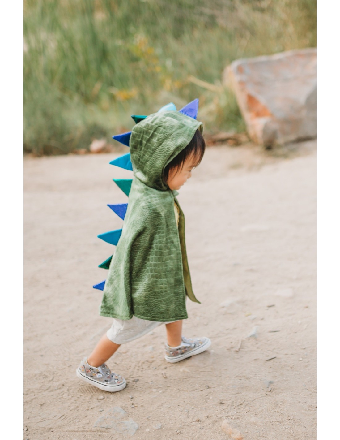 Absolutamente tierna, esta capa de dragón está hecha de suave terciopelo y tiene varios tonos de verde para lograr el look de dragón perfecto. La tela incluso está diseñada con escamas, por lo que el efecto lo convierte en una gran capa de dragón. Los picos están forrados con espuma y diseñados para mantenerse en su posición por sí mismos. El cierre de velcro en el cuello hace que esta capa sea fácil de poner y quitar.