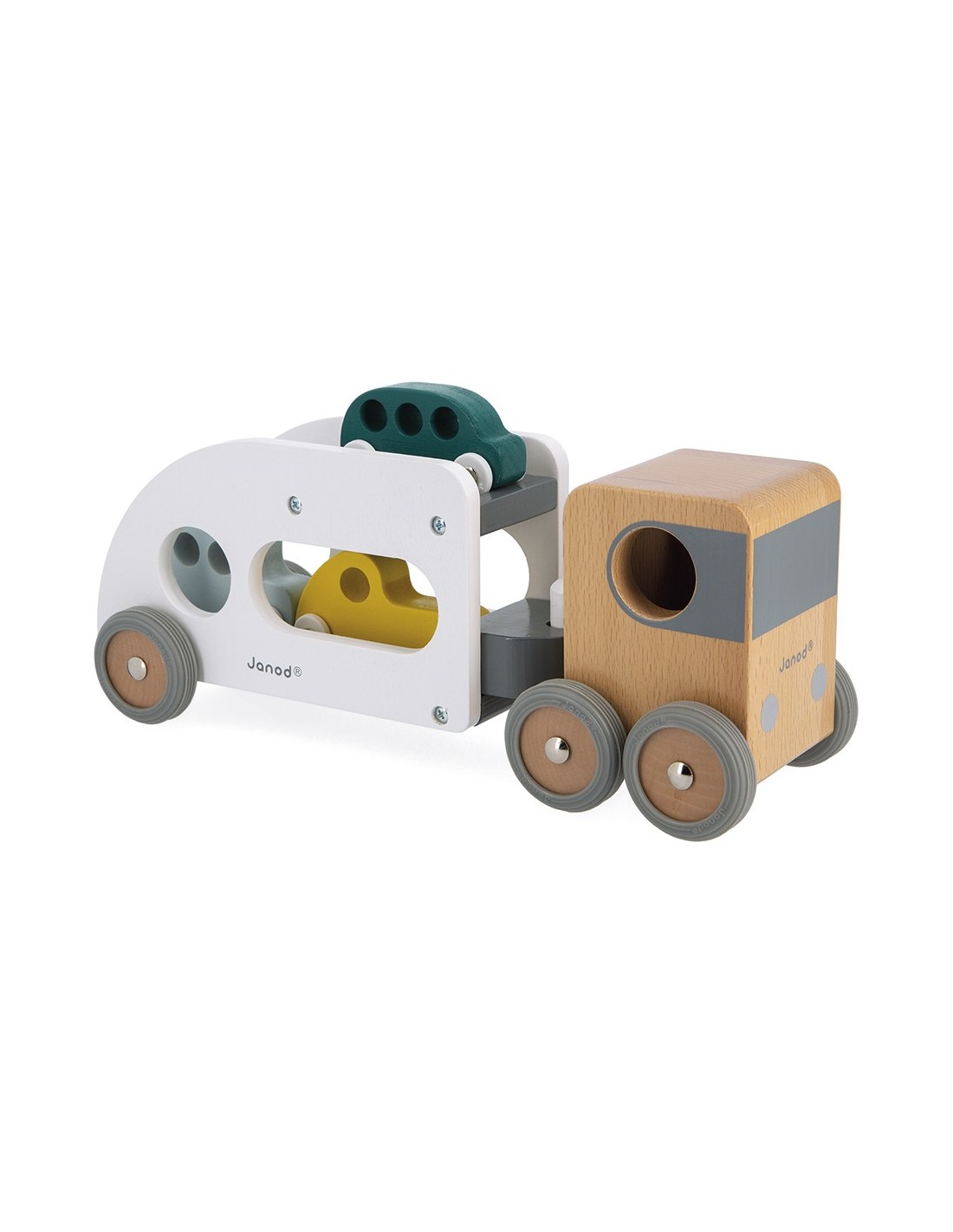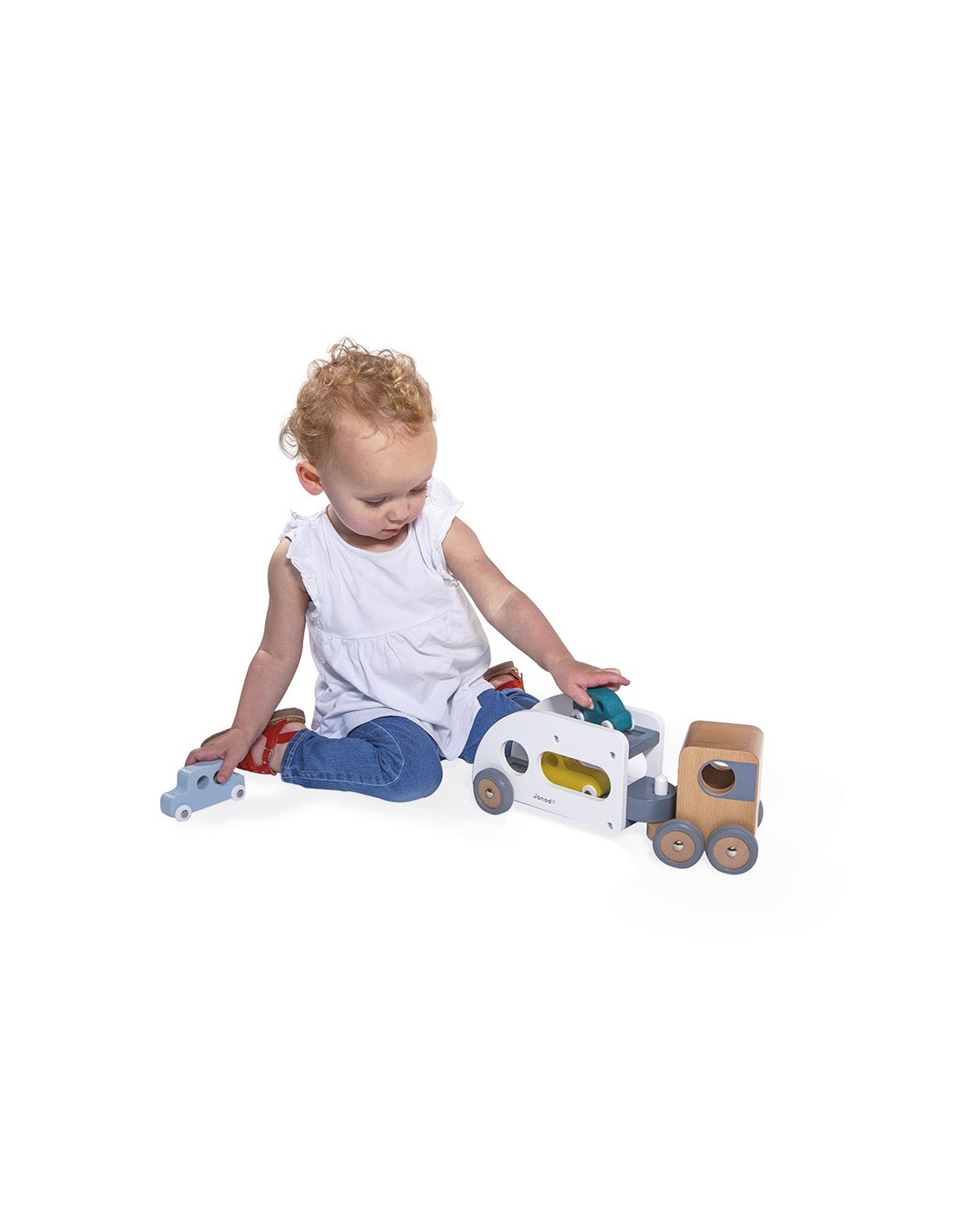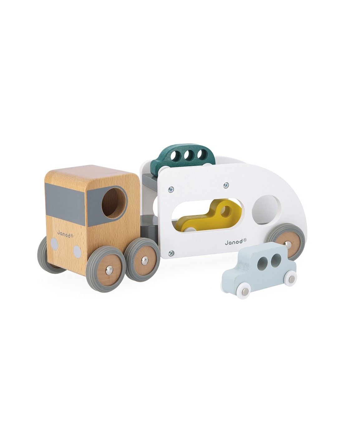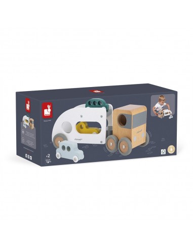 ¡Pi, piii! Los coches deben abordar, ¡el camión está esperando! ¡Este camión de transporte y sus tres pequeños autos azul, verde y amarillo harán las delicias de todos los fanáticos de los vehículos! El camión de transporte de automóviles está equipado con un remolque blanco extraíble, así como ruedas de goma silenciosas. ¡Pasará por cualquier sitio gracias a su extraordinario ángulo de giro! Este conjunto de camión y automóviles les permitirá desarrollar su imaginación y motricidad fina.