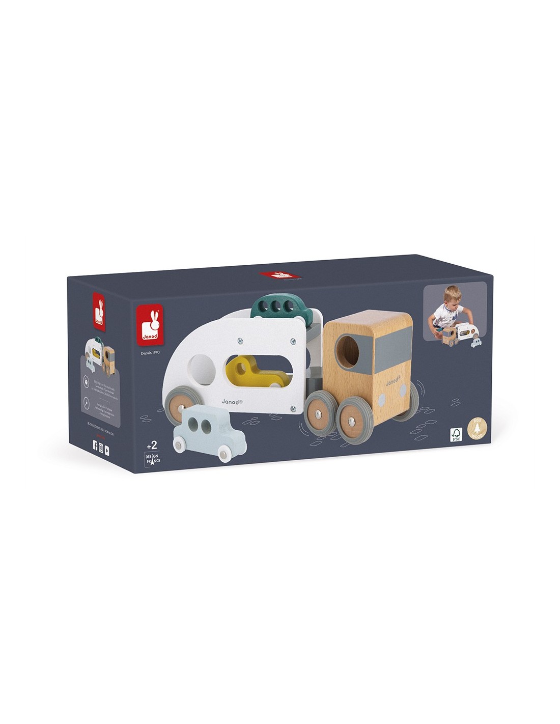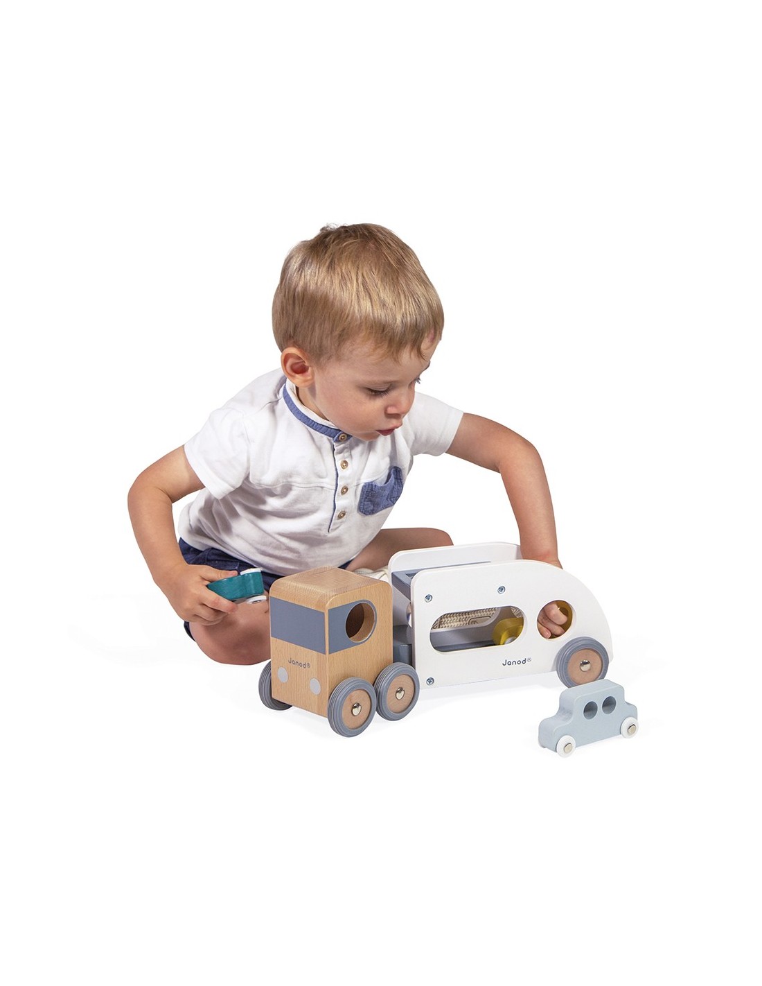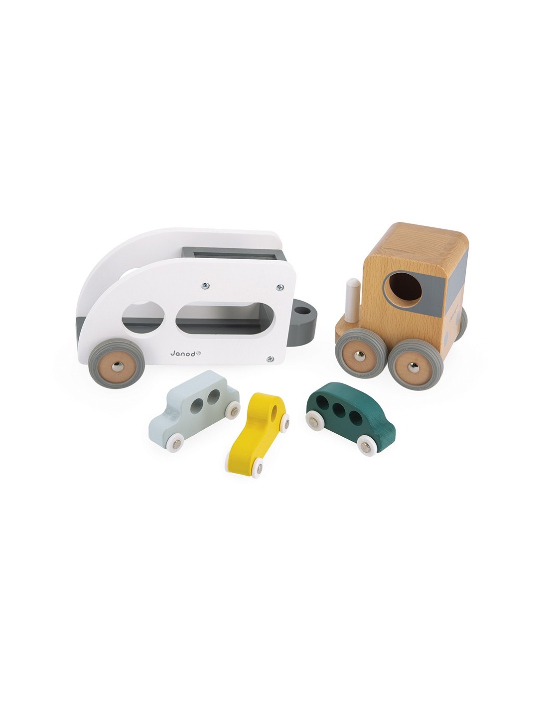¡Pi, piii! Los coches deben abordar, ¡el camión está esperando! ¡Este camión de transporte y sus tres pequeños autos azul, verde y amarillo harán las delicias de todos los fanáticos de los vehículos! El camión de transporte de automóviles está equipado con un remolque blanco extraíble, así como ruedas de goma silenciosas. ¡Pasará por cualquier sitio gracias a su extraordinario ángulo de giro! Este conjunto de camión y automóviles les permitirá desarrollar su imaginación y motricidad fina.