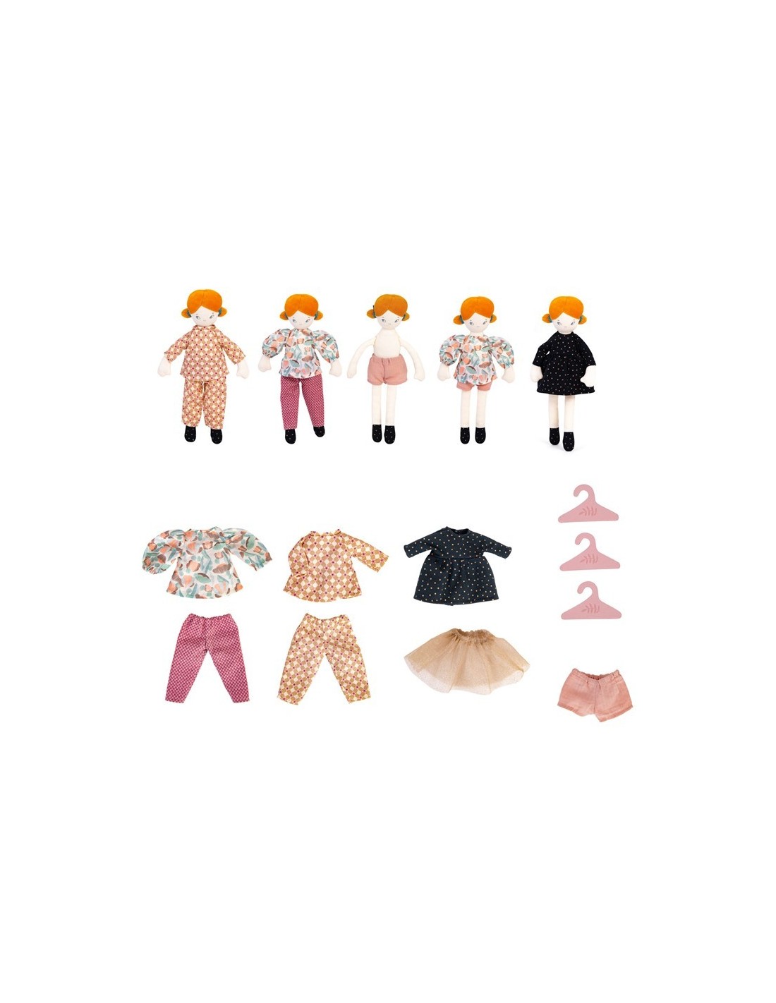 Este precioso maletín incluye una muñeca parisina Blanche (26 cm), un espejo, una barra de madera para colgar la ropa, 3 perchas ilustradas y 3 conjuntos de ropa. Es ideal para desarrollar la imaginación, el lenguaje y llevarlo cómodamente a todas partes y disfrutar de horas y horas de creación de historias y aventuras.