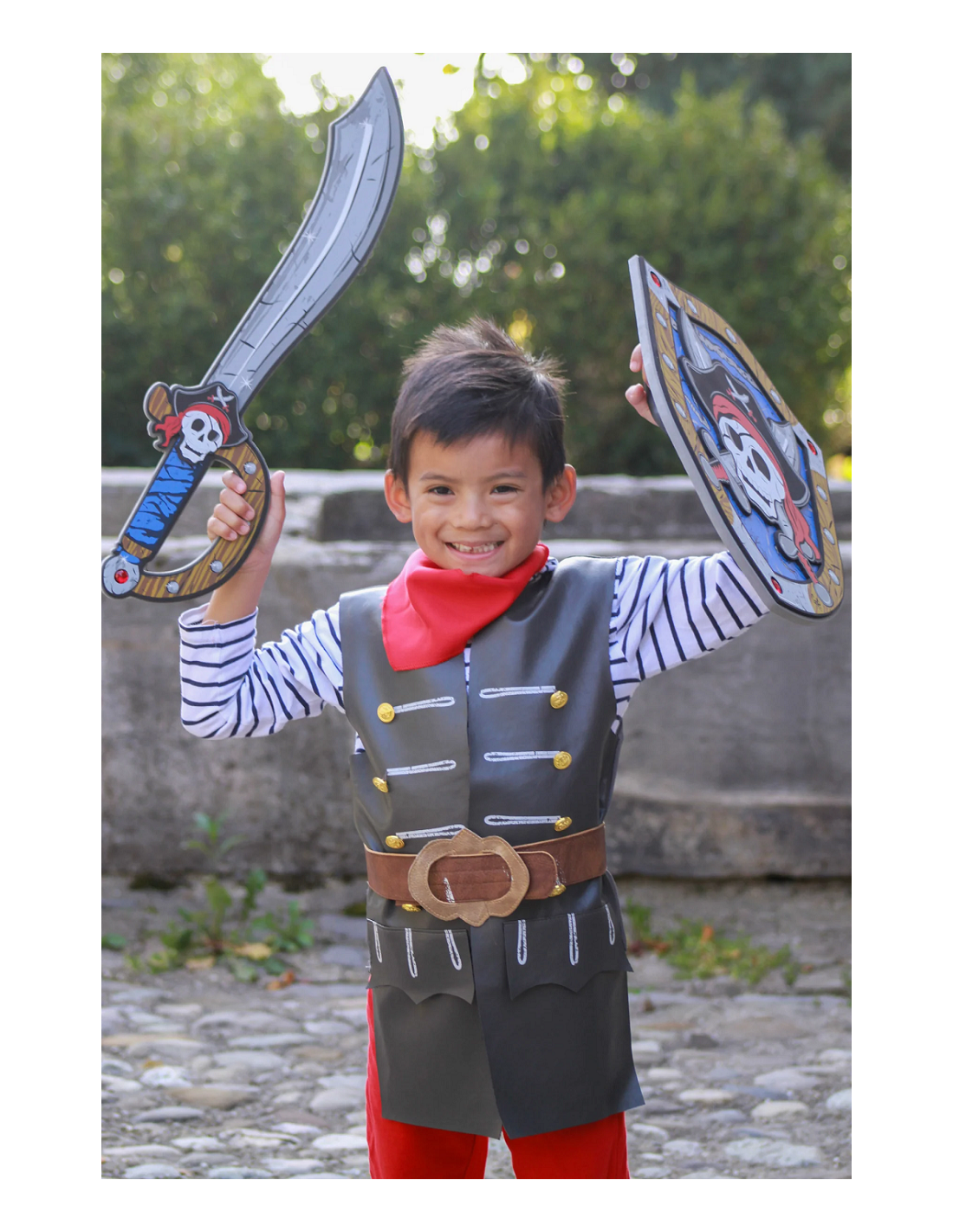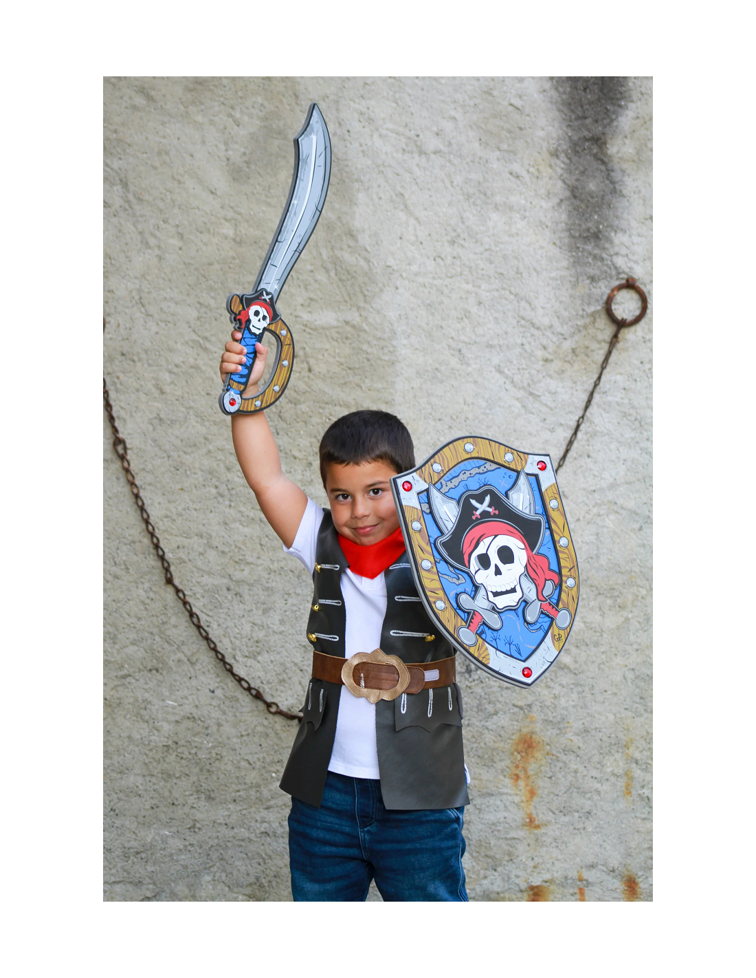 ¿Preparados para el abordaje? Con un atrevido emblema de calavera y tibias cruzadas en blanco y rojo, este conjunto de diadema y parche es perfecto para completar nuestro disfraz de pirata.