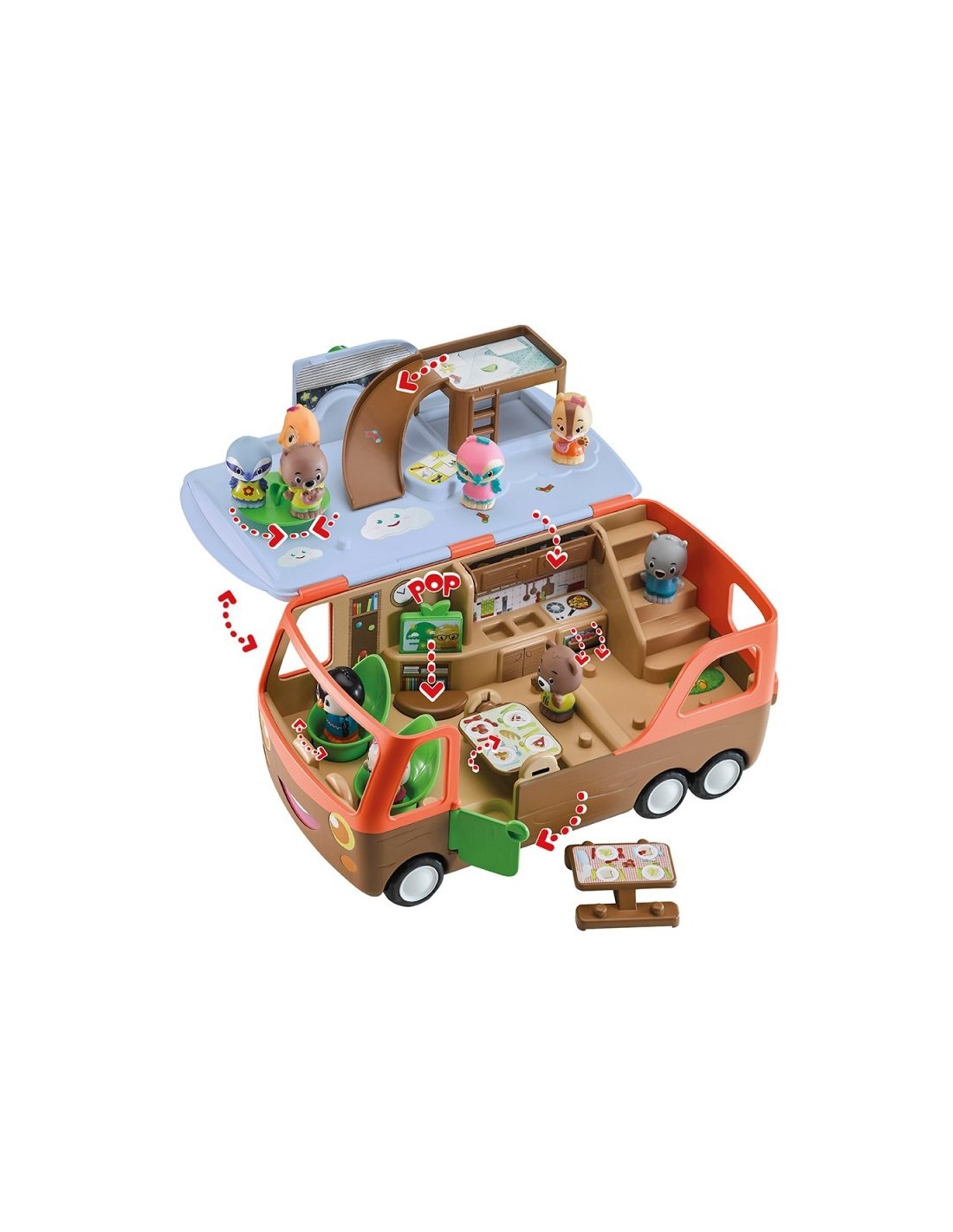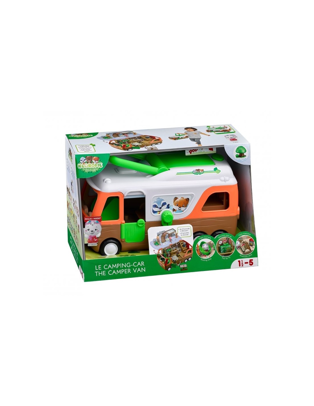¡Lánzate a la aventura con la autocaravana Klorofil! Como una autocaravana real, lo tiene todo: cabina, cocina, comedor y dormitorio/sala de juegos. Con más de 8 actividades sorprendentes y divertidas, ¡la autocaravana es el juguete perfecto para horas de juego!