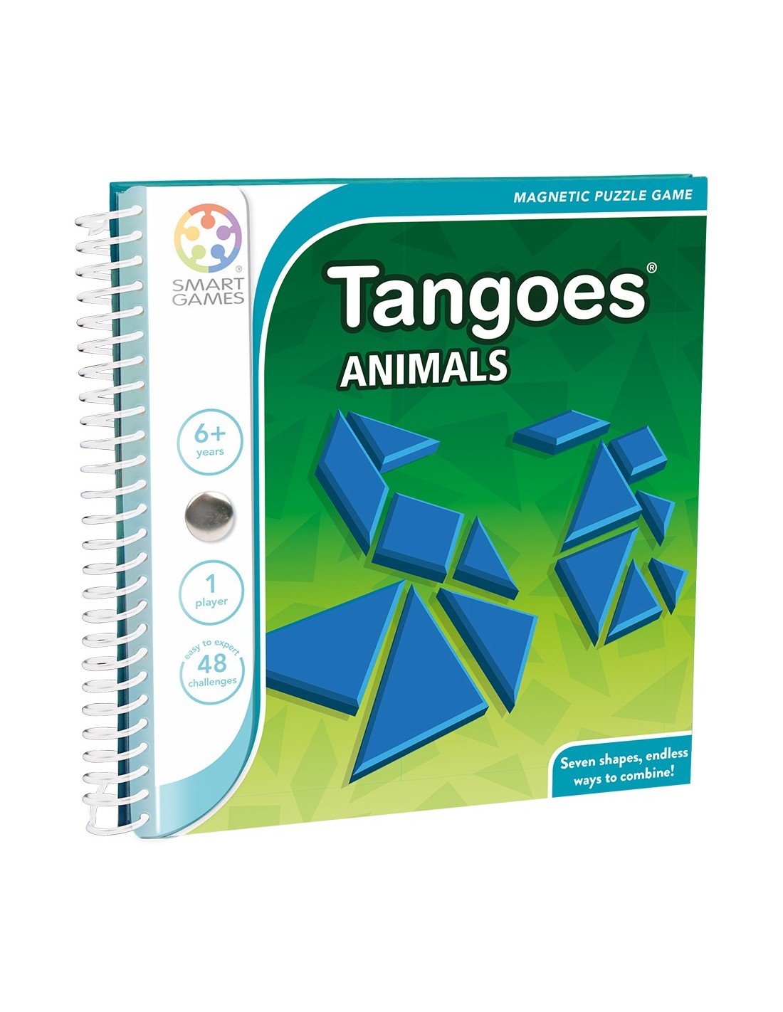 Tangoes Animals es un fantástico juego magnético de viaje con piezas Tangram. Propone 48 retos con formas de animales para una diversión garantizada.