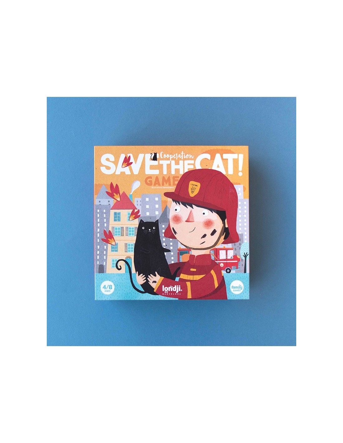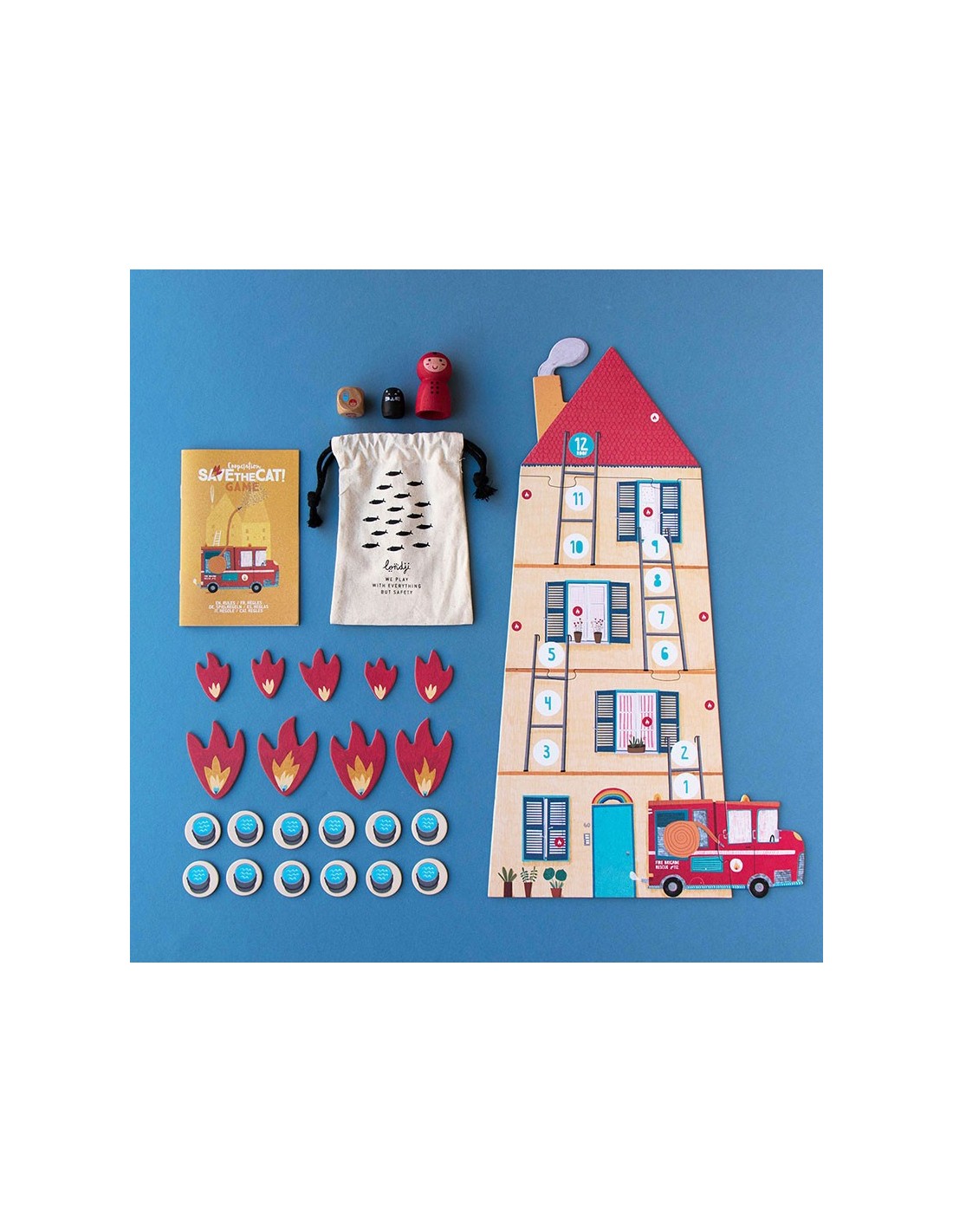 Ayuda a los bomberos a apagar el fuego y a salvar al gatito atrapado en el tejado. En este juego cooperativo nos convertimos en bomberos y trabajaremos juntos para conseguir apagar las llamas y llegar al tejado en el que hay un gatito atrapado. Deberemos tener los ojos bien abiertos y hacer una buena gestión del agua. Jugando a ser bomberos trabajamos la toma de decisiones en equipo, el conteo y el turno de espera. Un juego de mesa cooperativo y familiar en el que ayudaremos al bombero a salvar al gato atrapado entre las llamas.
