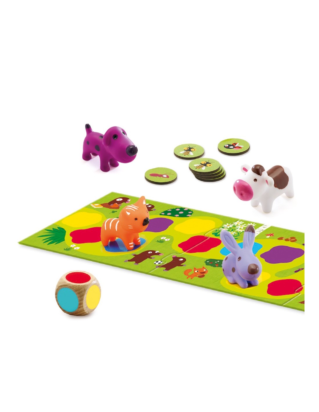 Un primer juego de recorrido con bonitos animales pensado para los más pequeños, con reglas sencillas y tiempo de juego reducido, adaptado a su capacidad de concentración.