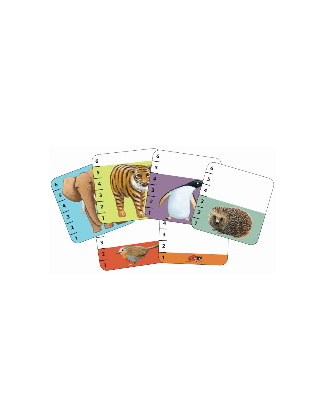 Cartas graduadas de 1 a 6. Para los más pequeños, no hay necesidad de saber contar, ¡basta con comparar el tamaño de los animales!