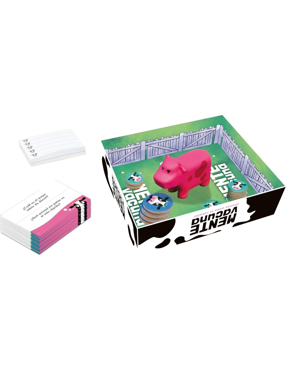 Pon a prueba tu capacidad para ser parte del rebaño. El objetivo es responder a las preguntas que se planteen pensando en lo que responderá la mayoría, con una “mentalidad de rebaño”. Por ejemplo: “Nombra una comida con un agujero en el centro”. Si te desmarcas de la respuesta mayoritaria del grupo, serás la “vaca rosa” del rebaño y así no llegarás muy lejos… El primer jugador en conseguir 8 fichas de vacas ¡es el ganador! Un party game para familias y amigos.