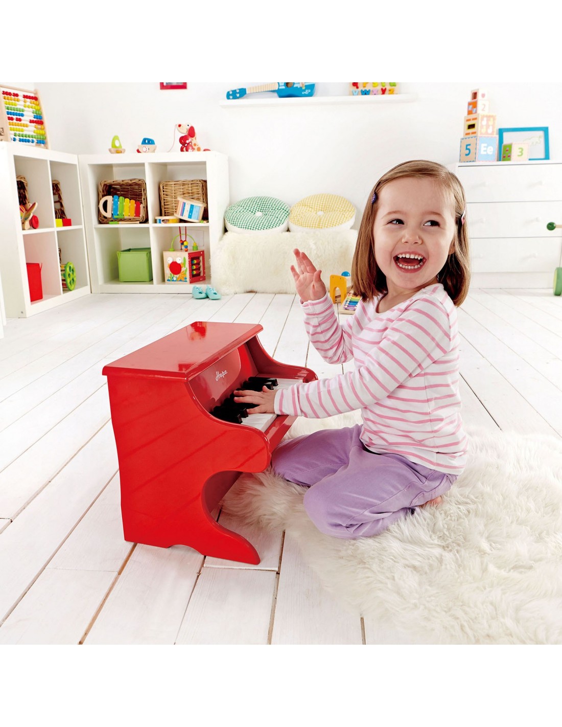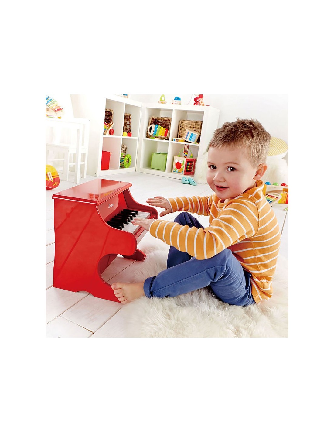 Este piano rojo, de 18 teclas y tamaño infantil, es ideal para que los niños toquen sus primeras melodías. Proporciona la escala musical, y es una herramienta muy útil para reconocer las notas musicales y familiarizarse con los primeros conceptos músicales. ¡Un juego educativo muy divertido!