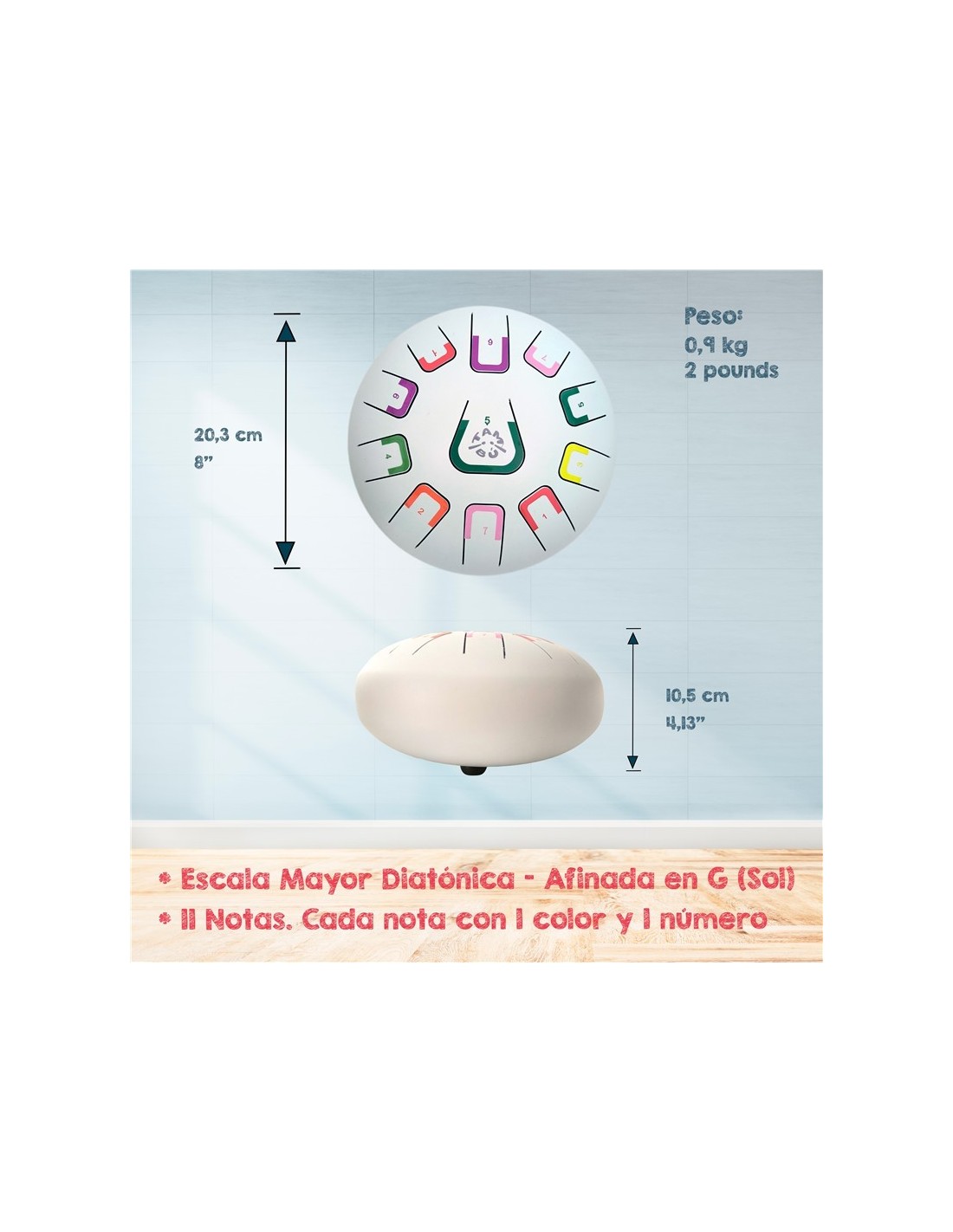 Tambor metálico de lengüetas, de 8" y 11 notas, color blanco mate