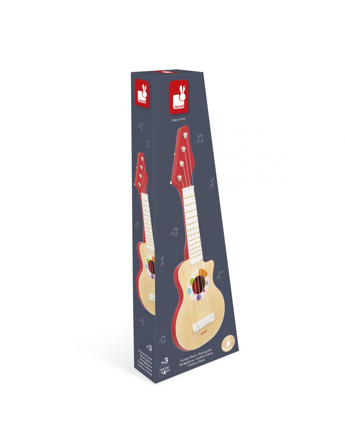 ¡Que suene la guitarra! Si esos pequeños roqueros no pueden dejar de bailar en cuanto oyen el sonido de una guitarra, ¡este es el regalo ideal para que imiten a las grandes estrellas del rock en su propio festival! ¡Esta fantástica guitarra de estilo potente electrizará a los locos por la música! Un juguete musical de madera que dará lugar a muchos conciertos e imitaciones. Esta guitarra de juguete de 4 cuerdas permitirá que los niños descubran los sonidos y estimulen su sentido del ritmo. ¡Viene con un juego de cuerdas de repuesto para satisfacer a todos los músicos, incluso a los más dinámicos!