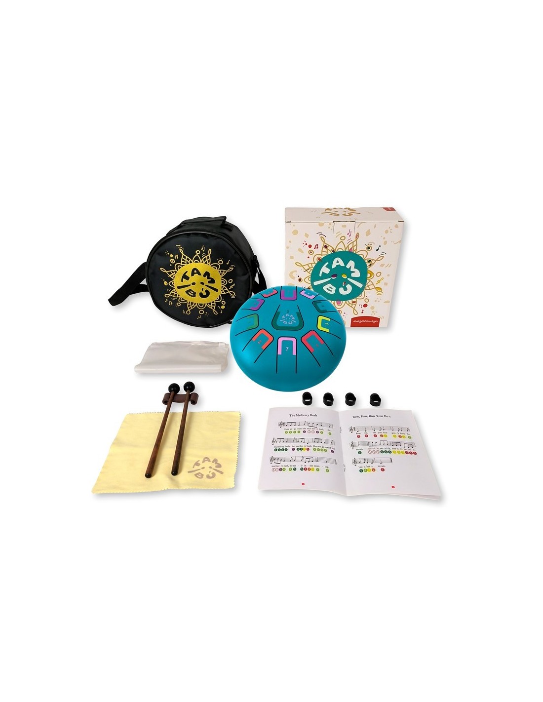 El tambor metálico de lengüetas es un bonito instrumento musical para iniciarse en el fascinante mundo de la percusión. Tiene un sonido aterciopelado y puede hacerse sonar de diferentes maneras. Viene acompañado de partituras en números y colores para aquellos que empiezan. Incluye una práctica bolsa para guardarlo y transportarlo.