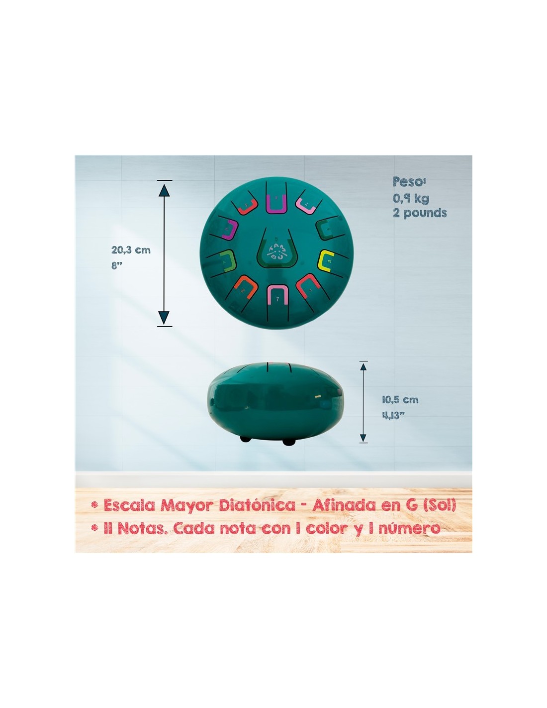 Tambor metálico de lengüetas, de 8" y 11 notas, color turquesa mate