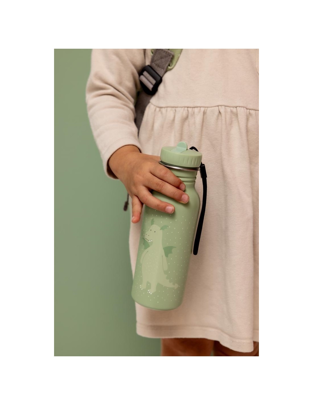 Esta botella será imprescindible cuando tu peque salga a la calle. Está fabricada en acero inoxidable, alternativa perfecta y sostenible a las botellas de plástico desechables. El material es ligero, altamente resistente a cualquier impacto y no libera sustancias tóxicas en el agua. Es fácil de limpiar, debido a la simplicidad en el diseño. ¡Usa un cepillo para botellas, agua tibia con detergente o simplemente pon la botella en el lavavajillas! La práctica tapa está diseñada para que las manos pequeñas puedan abrirla y cerrarla fácilmente, y es a prueba de fugas. Además, está equipada con una cuerda con la que podréis transportarla fácilmente o colgarla en una mochila.