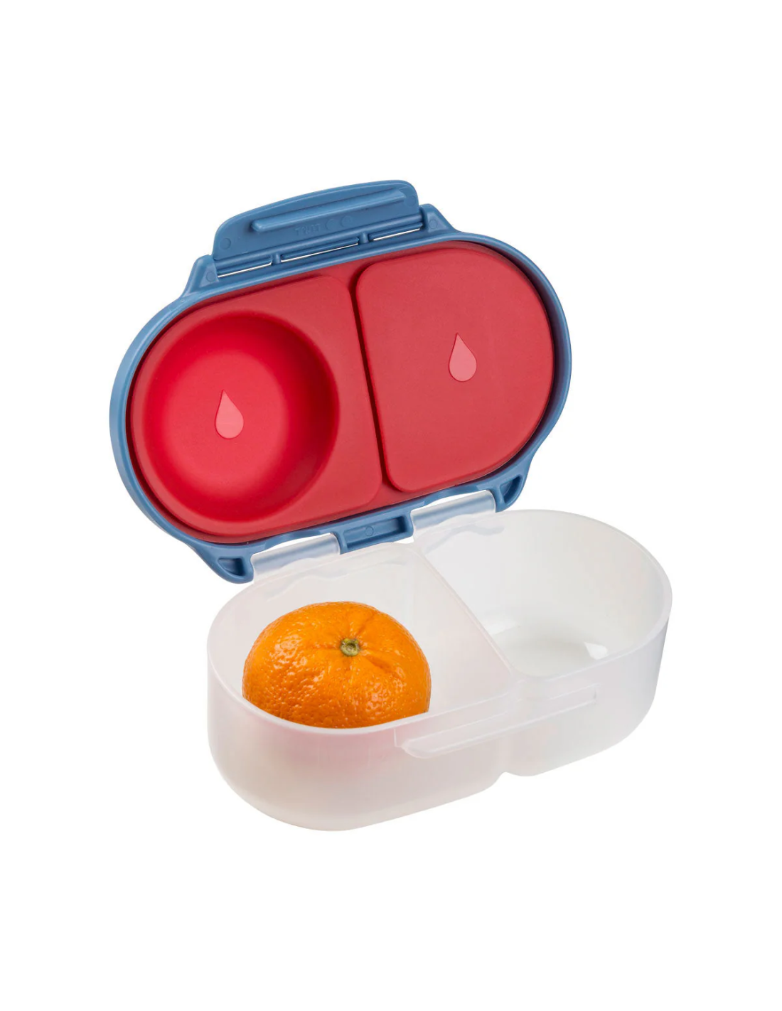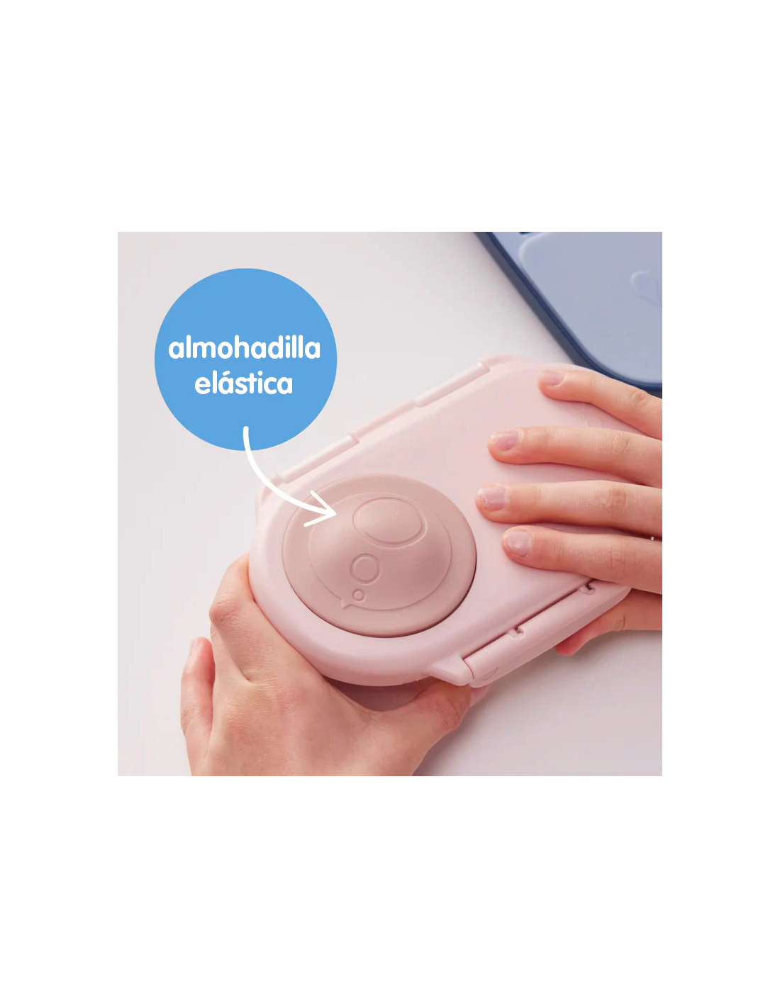 Con esta cajita snack la hora de la merienda es mucho más fácil. La opción perfecta para raciones más pequeñas: para el colegio, el parque, una excursión, una tarde de compras, etc. El compartimento de tapa flexible permite transportar la fruta entera. Los dos compartimentos cuentan con la protección a prueba de fugas de la almohadilla de silicona, por lo que se pueden transportar snacks semilíquidos, como puré, yogures, raciones de comida con salsa El clip de fácil apertura y cierre es suficientemente grande para las manos de los más pequeños, y la almohadilla flexible es extraíble para una limpieza fácil e higiénica.