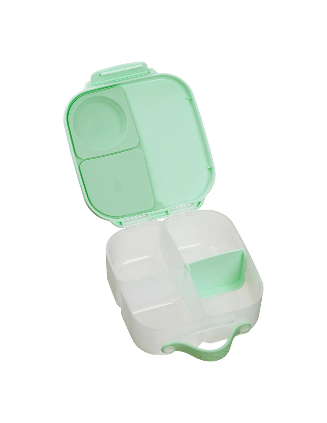 Esta fiambrera es compacta, pero tiene mucho espacio para ofrecer almuerzos saludables y variados: cuenta con un compartimento con almohadilla elástica para frutas enteras y dos compartimentos a prueba de fugas con una almohadilla de silicona flexible, aptos para alimentos semilíquidos, como puré, yogur, salsas El divisor extraíble se desliza fácilmente, lo que permite ajustar el tamaño del compartimento. Cuenta con asa de transporte suave y de fácil agarre, y clip grande adecuado para los dedos pequeños, que permite una fácil apertura fomentando la independencia de los niños. La almohadilla es extraíble para su limpieza.