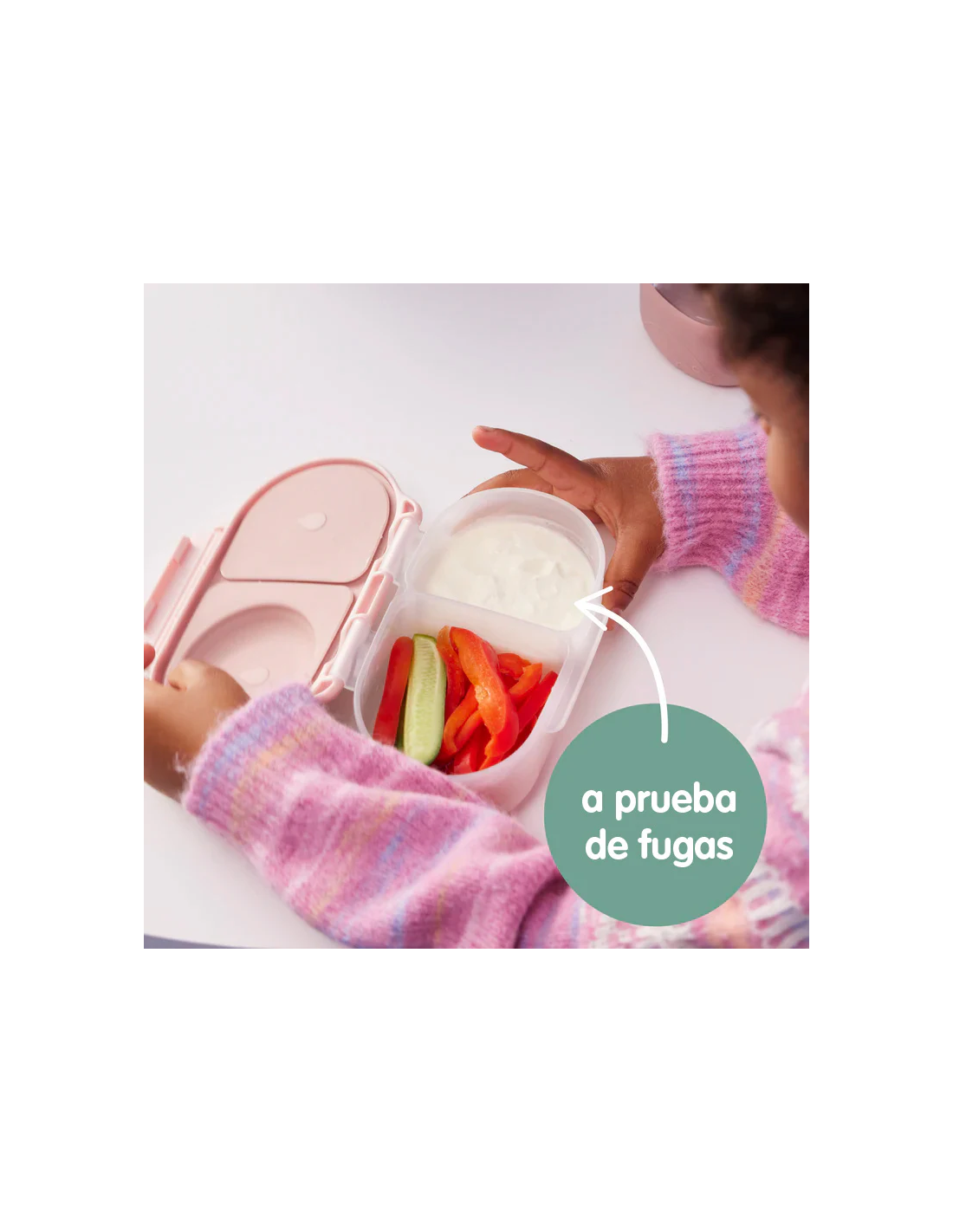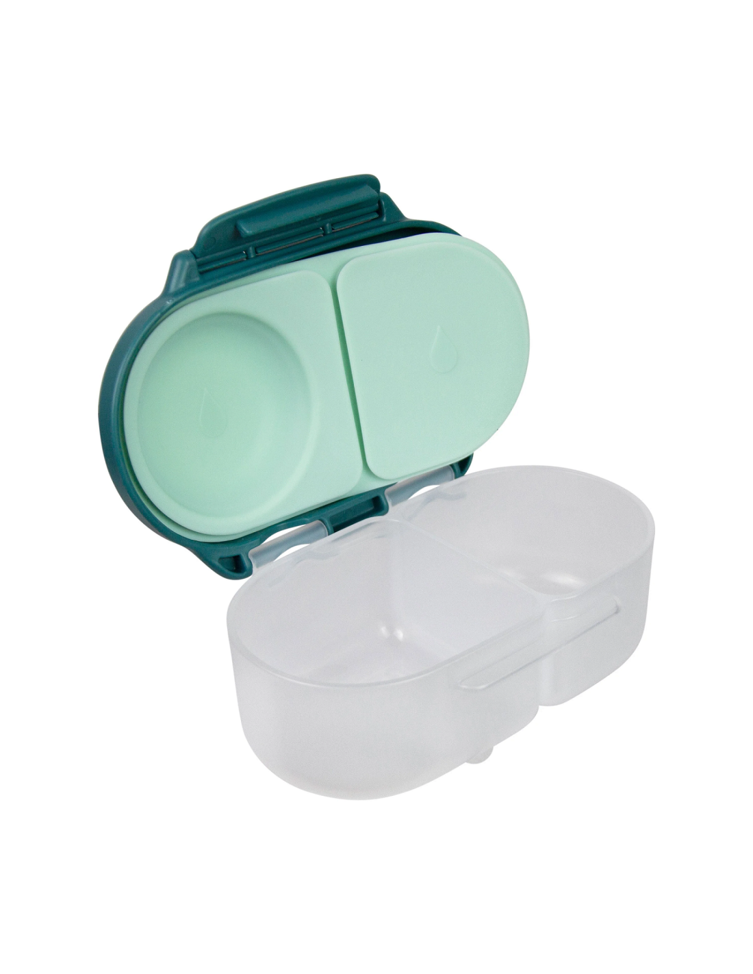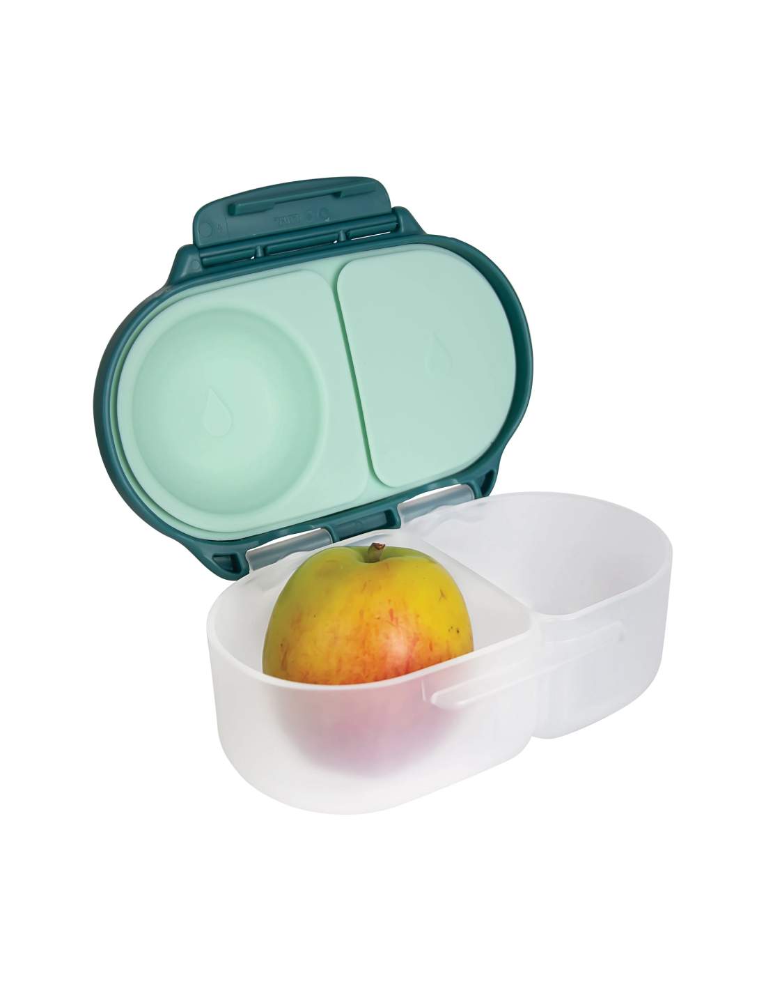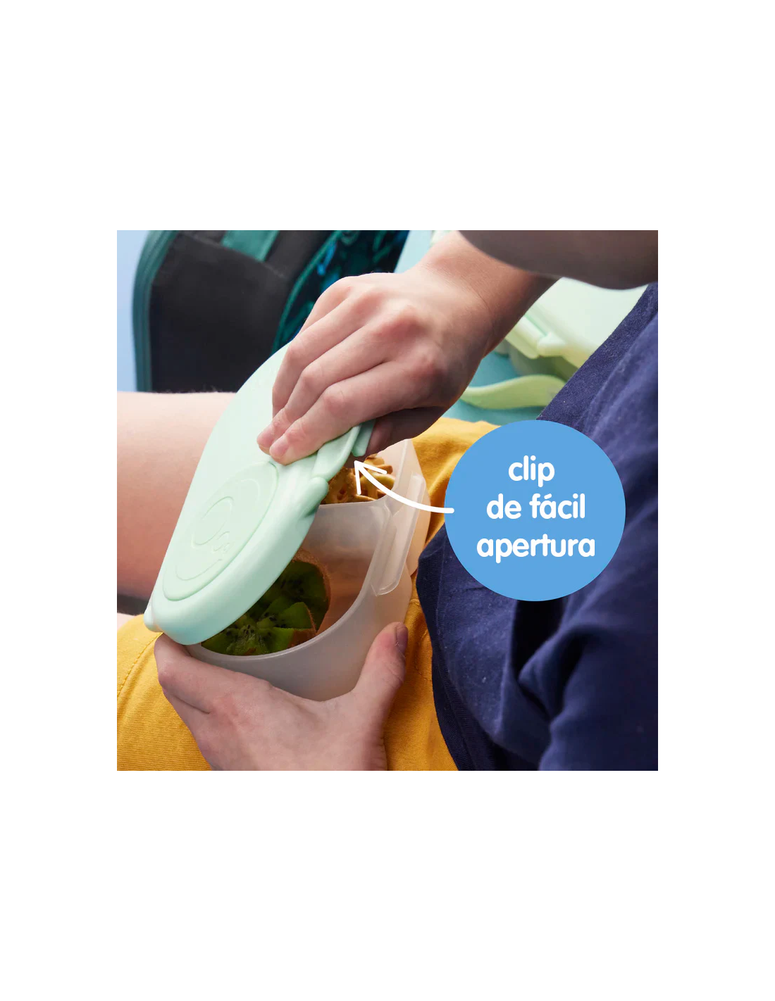 Con esta cajita snack la hora de la merienda es mucho más fácil. La opción perfecta para raciones más pequeñas: para el colegio, el parque, una excursión, una tarde de compras, etc. El compartimento de tapa flexible permite transportar la fruta entera. Los dos compartimentos cuentan con la protección a prueba de fugas de la almohadilla de silicona, por lo que se pueden transportar snacks semilíquidos, como puré, yogures, raciones de comida con salsa El clip de fácil apertura y cierre es suficientemente grande para las manos de los más pequeños, y la almohadilla flexible es extraíble para una limpieza fácil e higiénica.