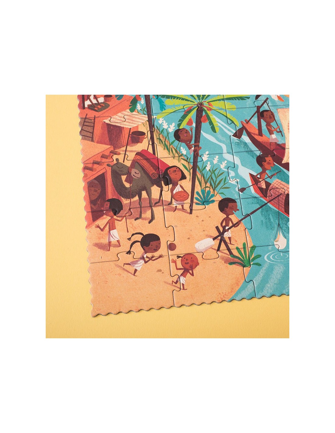 Este puzle es perfecto para que los niños se sumerjan en la grandeza del antiguo Egipto, su preciosa ilustración seguro despertará su curiosidad. Y gracias a sus 34 fichas de observación conocerán a los personajes y los secretos que se esconden bajo la atenta mirada de la Esfinge: el faraón, la fértil tierra del Nilo, el escriba, entre muchos otros.