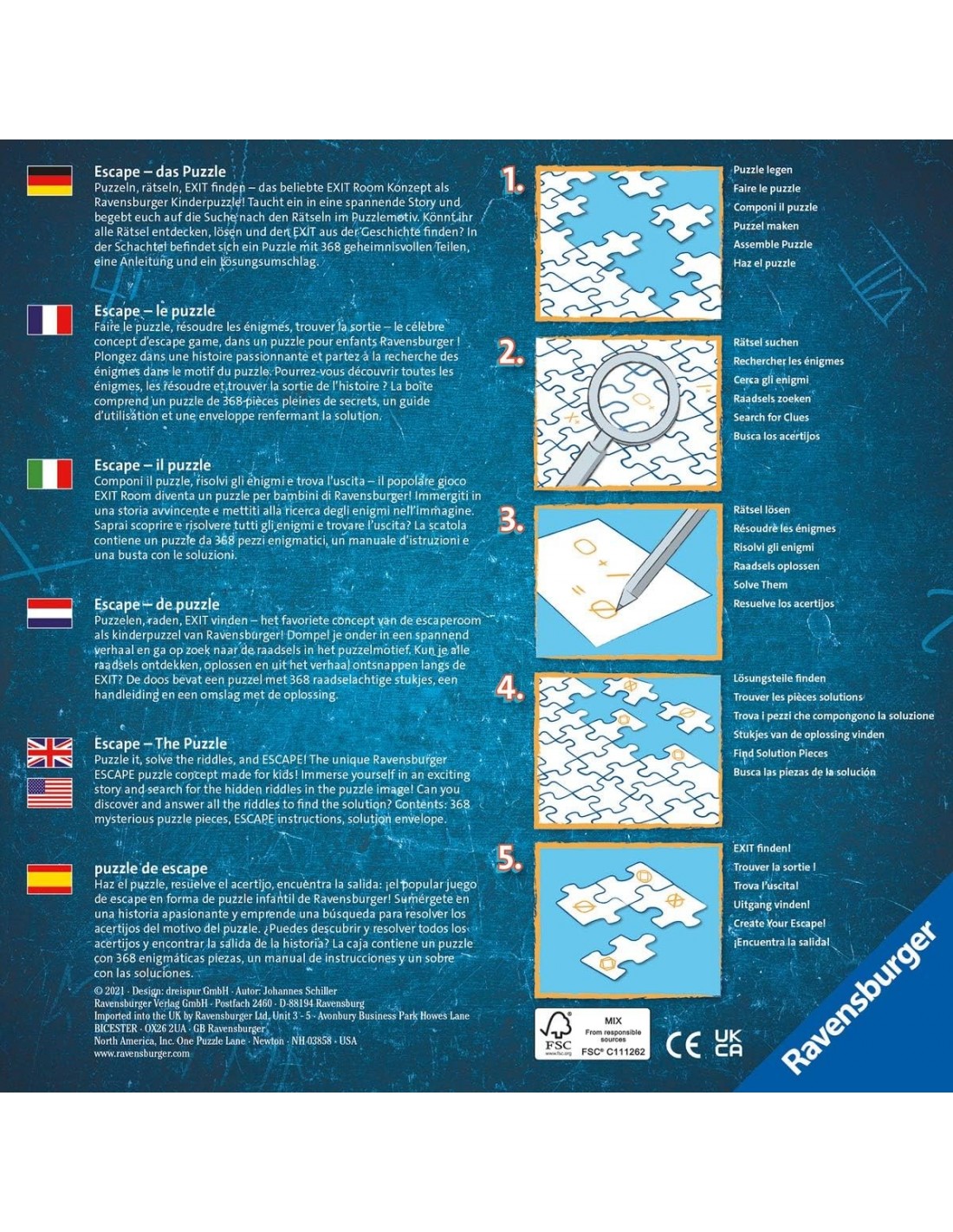 En cuanto se han colocado correctamente las 368 piezas, llega el momento de desplegar altas dosis de intuición, imaginación y lógica. Al igual que en el juego de escape en vivo, los participantes viven una historia apasionante que los lleva a mundos llenos de misterio.